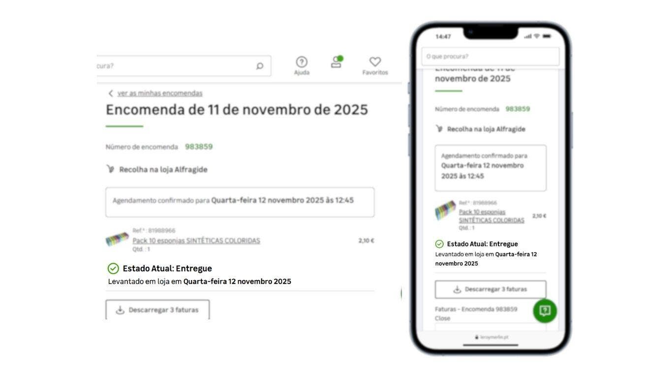 Para compras com recolha em loja, deve agendar o seu horário de recolha a partir de 2 horas após terminar a sua encomenda.