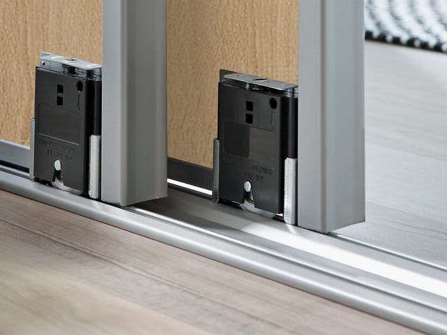 Calhas: Encaixe para a porta deslizar. Pode ser equipado com um sistema de amortecimento que permite fechar as portas suavemente.
