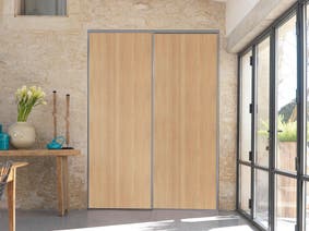 Oferecemos a possibilidade de desenhar e montar as suas próprias portas de correr. Uma tarefa muito simples graças aos nossos kits universais compostos por painéis, perfis e calhas.