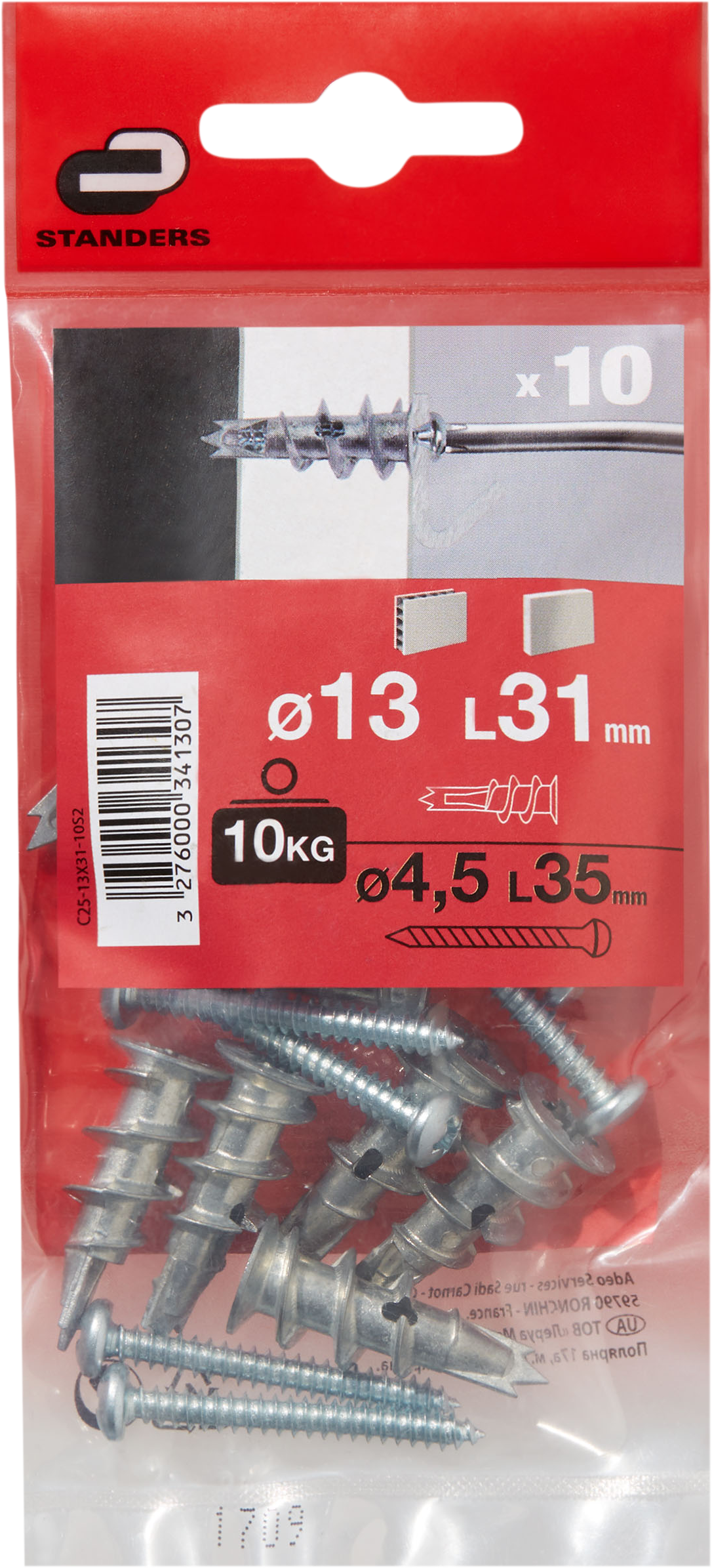 10 buchas de metal STANDERS AUTOPERFURANTES 4.5X35MM COM PARAFUSO