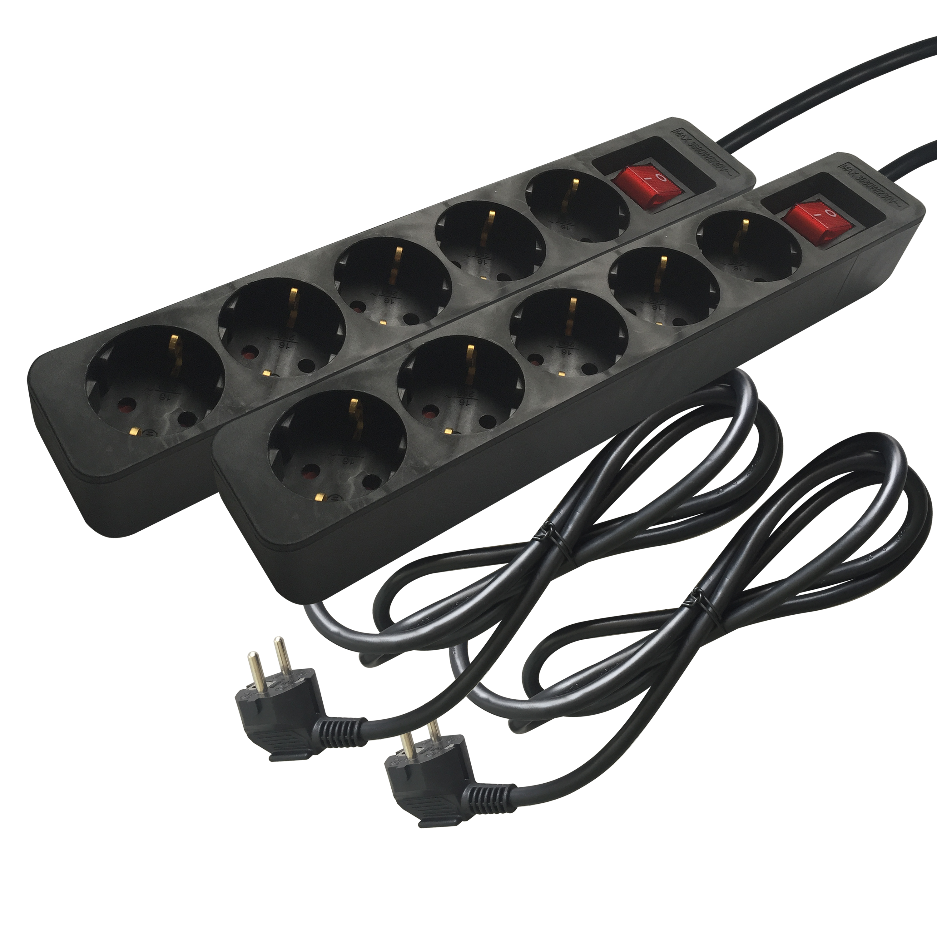 2 Extensões 5 tomadas com interruptor 1.5m preto Lexman