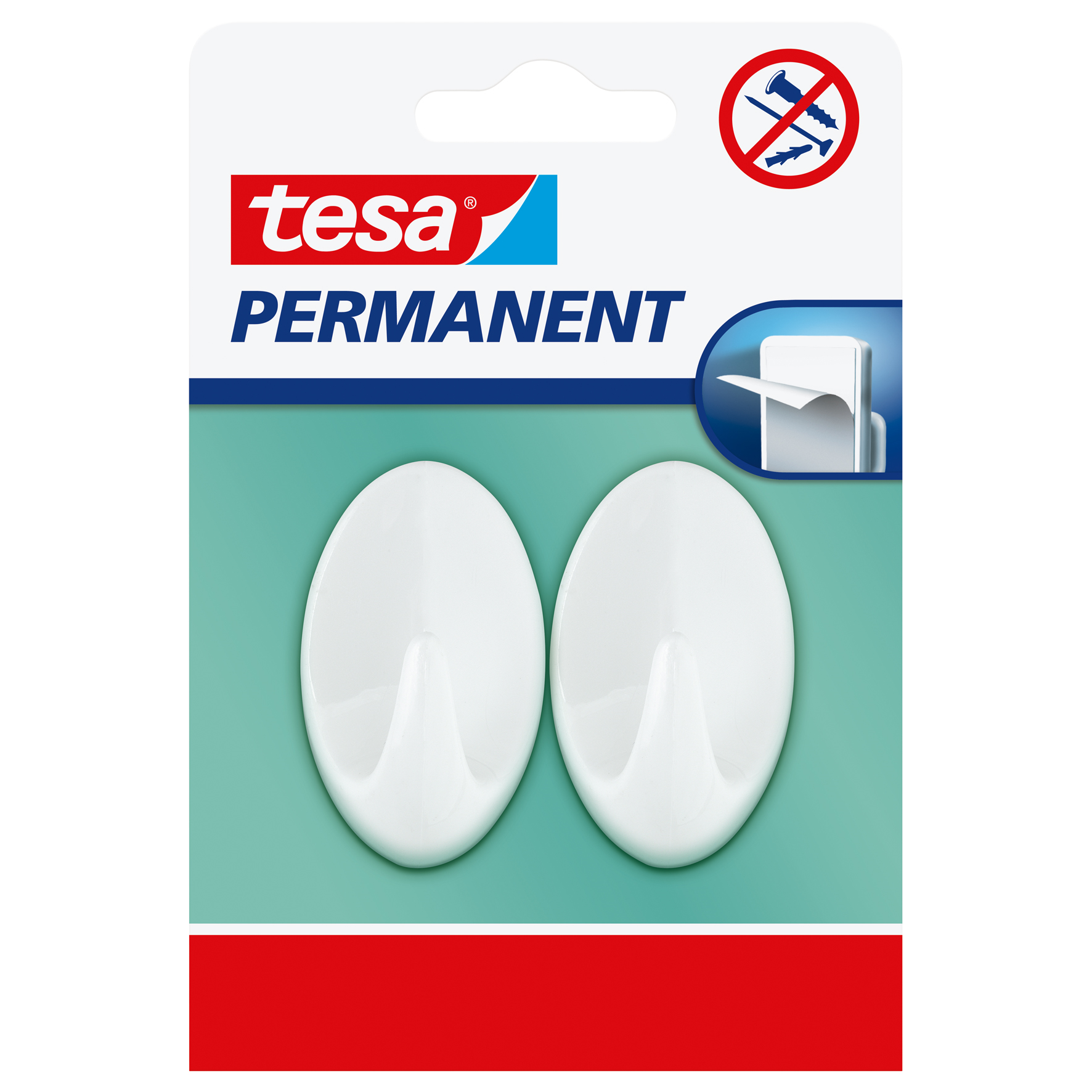 Os Ganchos Permanentes Brancos Ovais tesa contêm um revestimento autoadesivo, para fixação permanente em azulejos, vidro, madeira e outra superfícies lisas.