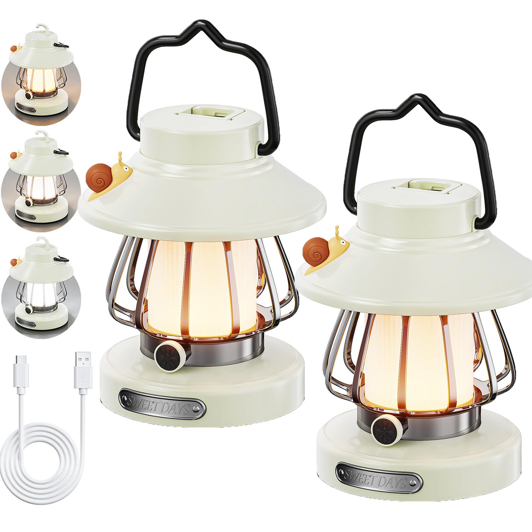2 PCS Luz LED recarregável para acampamento, luz portátil à prova d'água para barraca, 3000-6500K, para emergências, caminhadas e furacões (branca)