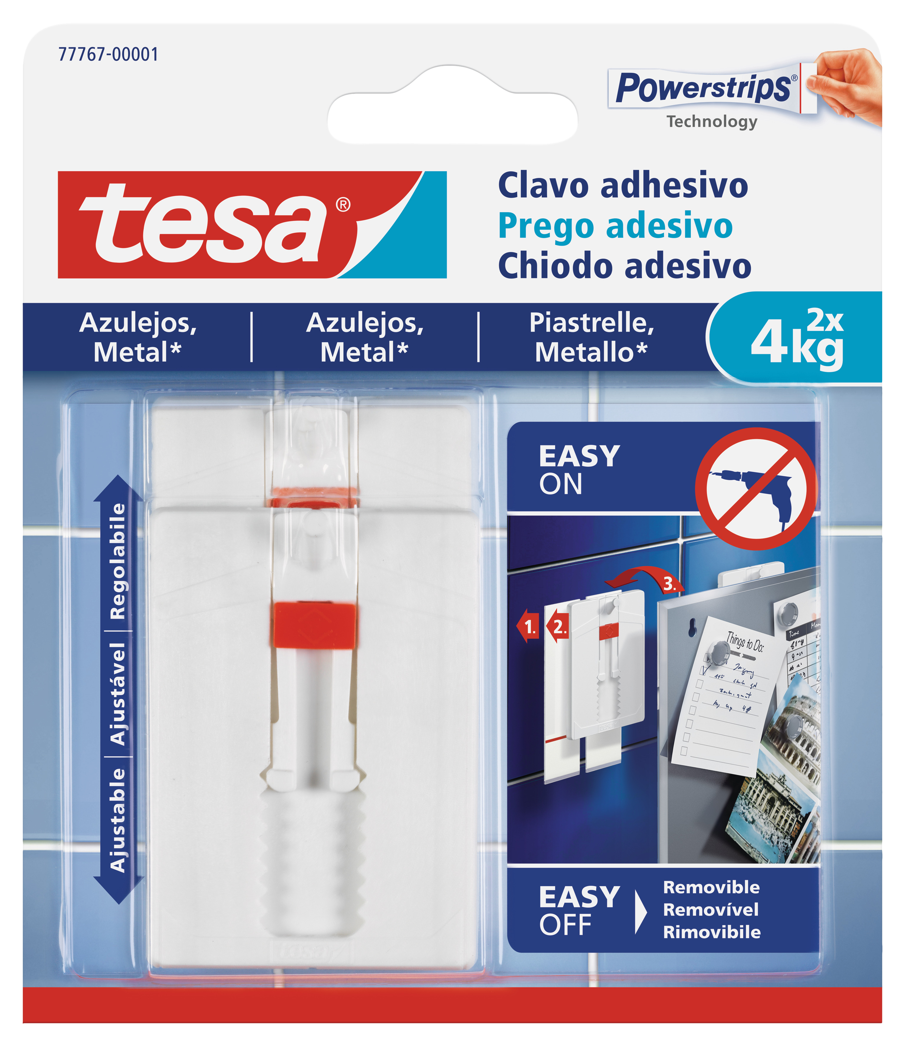 Prego adesivo ajustável para azulejo e metal 4kg tesa® removível e reutilizável ideal para pendurar e alinhar objetos em superfícies interiores lisas e estáveis