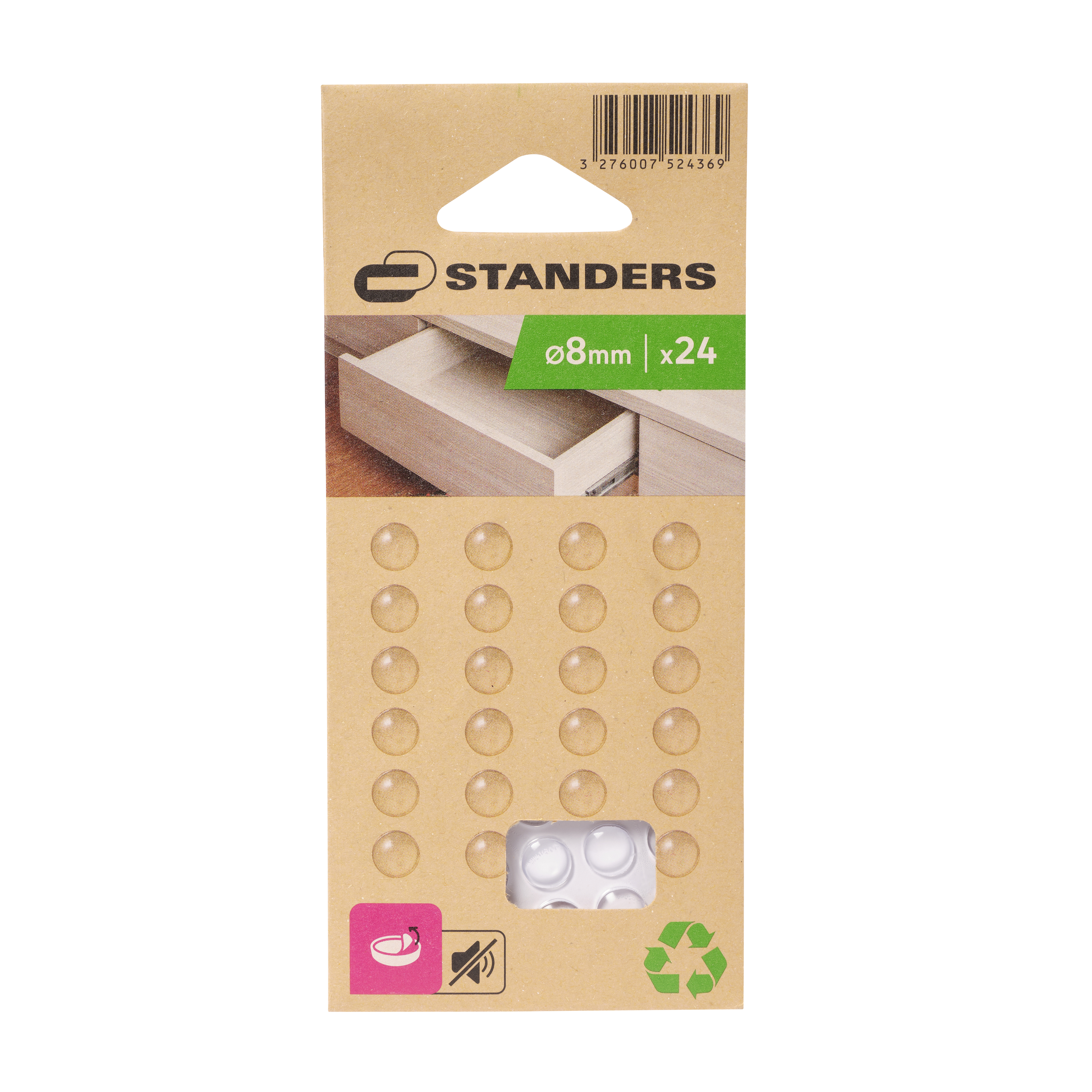 Este patim redondo transparente com 8 mm de diâmetro possui uma espessura de 2,5 mm. Este patim é adesivo e fácil de instalar numa superfície limpa e lisa. Discreto, protege as paredes dos impactos e amortece o fecho das suas gavetas ou portas. A instalação é simples: Limpar e secar a superfície com um pano limpo, retirar a cobertura e colar o patim pressionando firmemente. Embalagem responsável e otimizada, sem plástico e totalmente reciclável.
