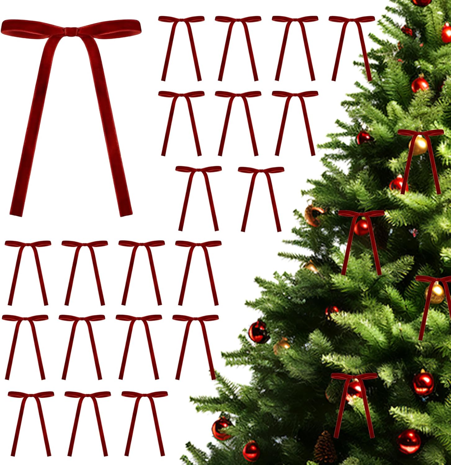 O pacote inclui: você receberá 24 laços com características próprias. Eles combinam com as decorações da sua festa de Natal e ajudam a embrulhar presentes.