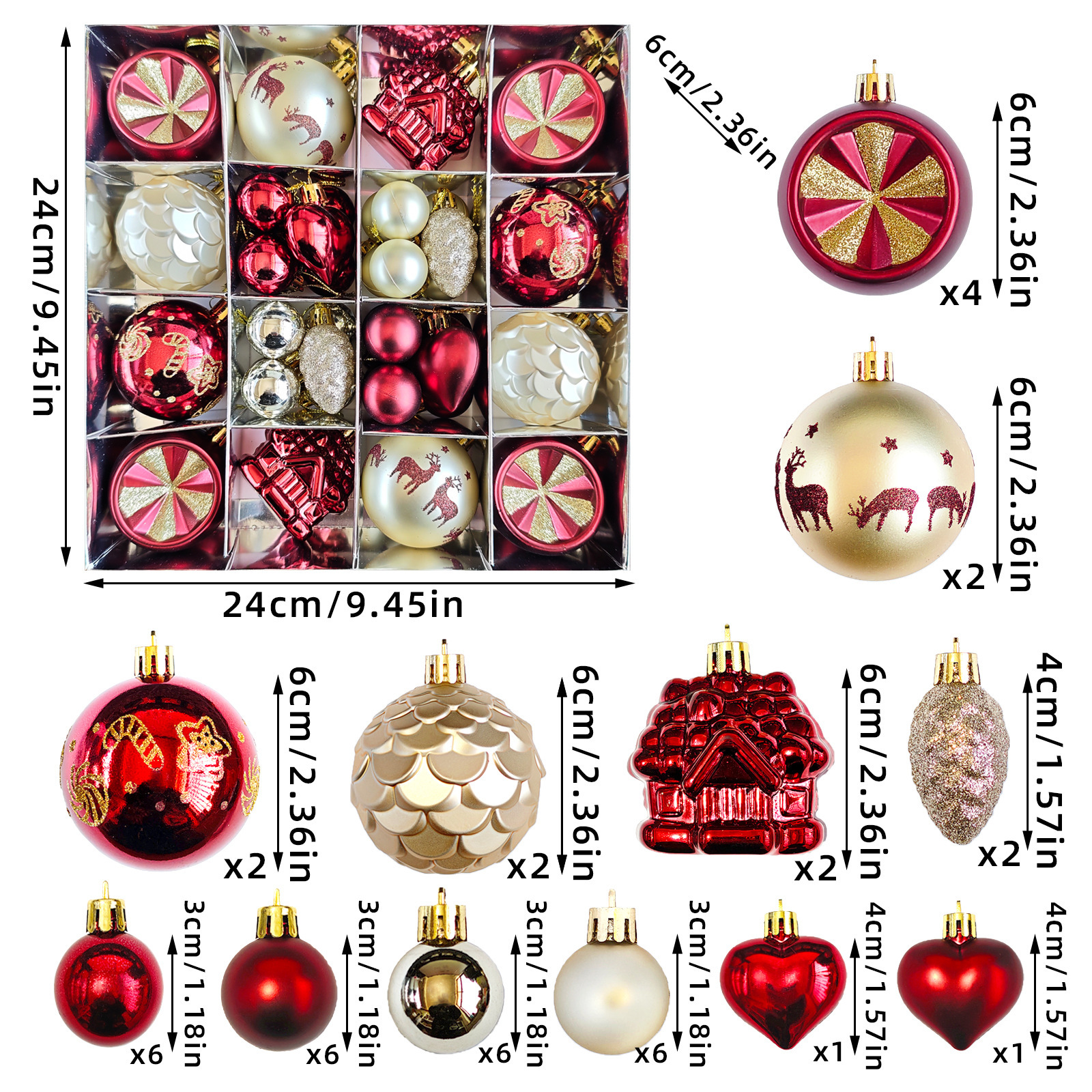🔸Quantidade: Um conjunto contém 46 enfeites para árvore de Natal
