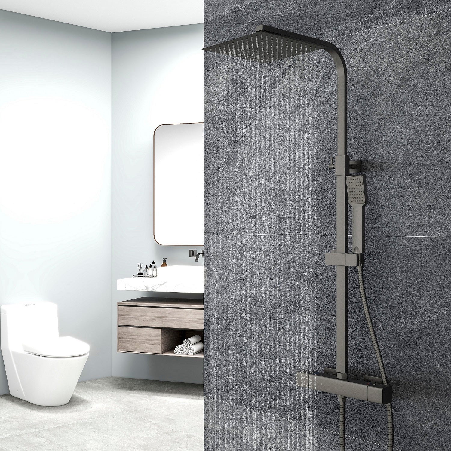 AICA Coluna de chuveiro termostática preta fosca com barra ajustável e spray superior de aço inoxidável design simples para banheiro