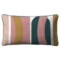 Coxim decorativo com estampado geométrico multicolorido em veludo. Dê à sua casa um toque mais elegante e chique com esta almofada de veludo. Medidas: 50x30cm.