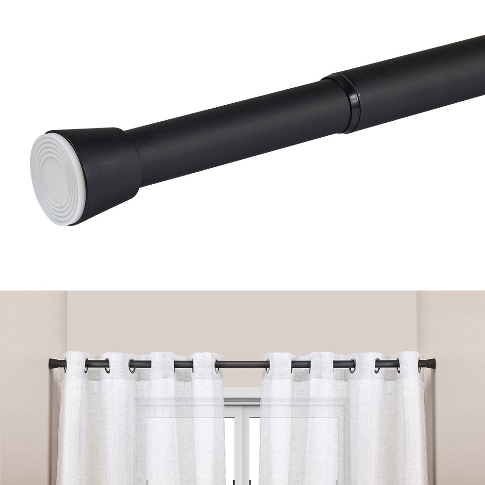 Barra de cortina extensível por pressão Ø28 mm – Preta (140-250 cm)