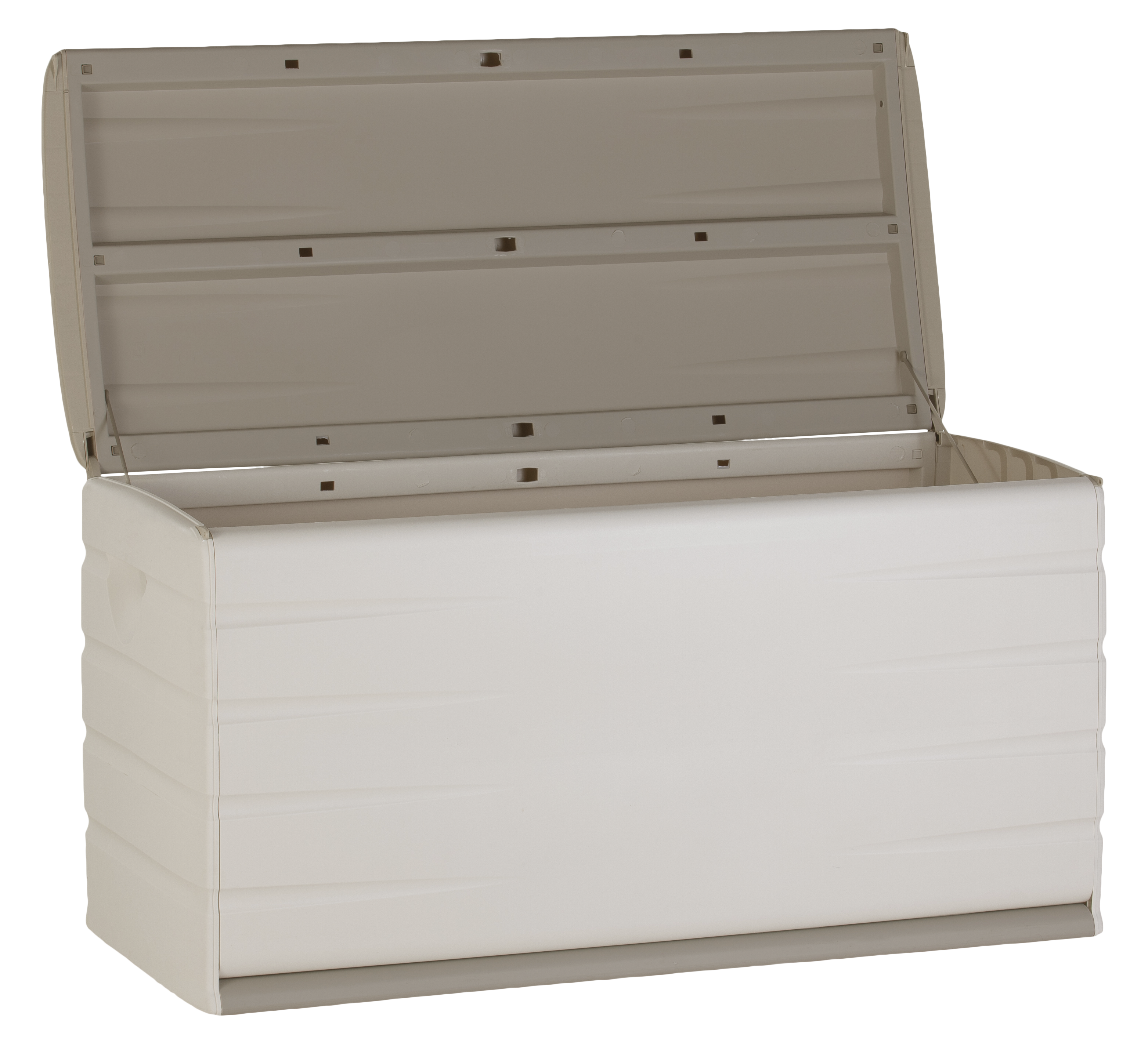 Baú em resina, ideal para arrumação no interior de casa. Capacidade de 400 litros.