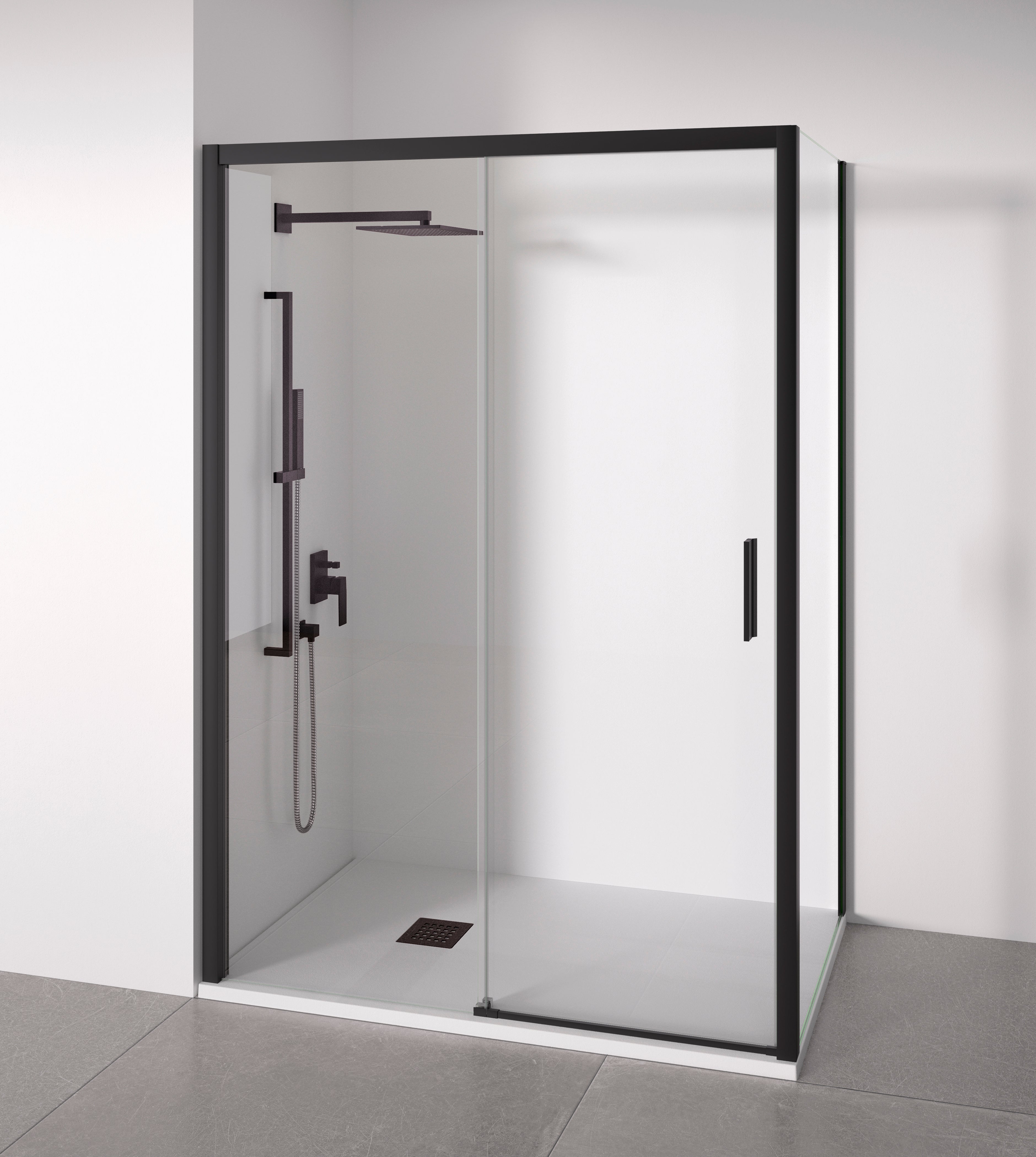 BELLOBATH - Cabina de duche angular 1 porta deslizante + 2 fixas - Vidro Antical - Negro - Largura Adaptável 105-110x87-90 - Porta Direita