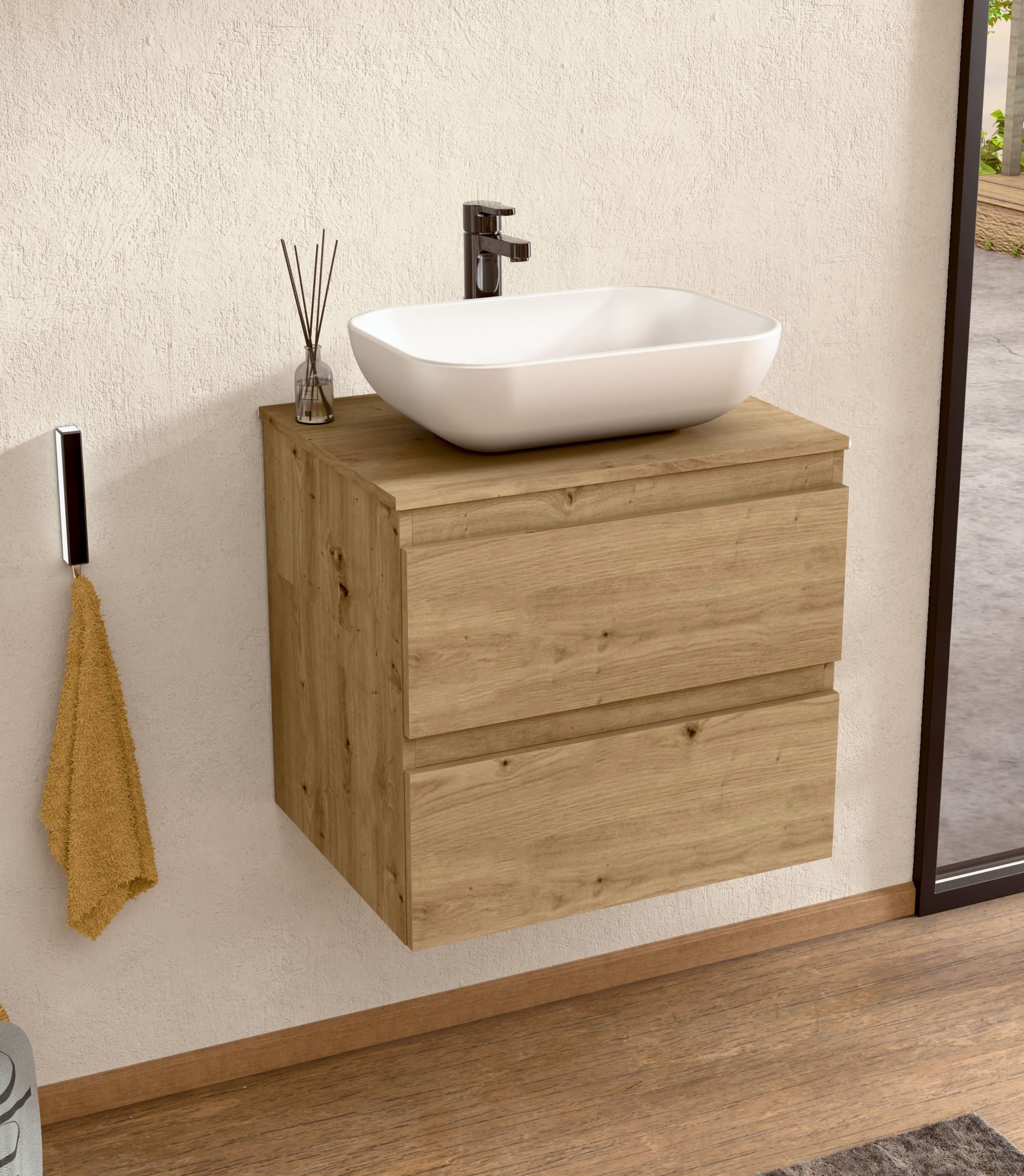 BELLOBATH - Móvel com Lavatório de Cerâmica, Móvel Montado com 2 Gavetas, 60 x 55 x 46 cm, Móvel Carvalho