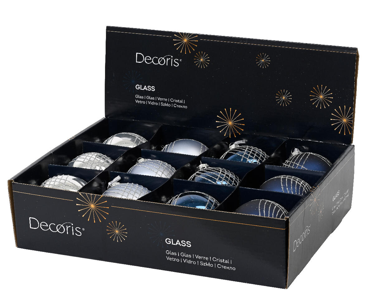 Bola de natal geométrica vidro ⌀8 cm azul/prateado (cor sortida)