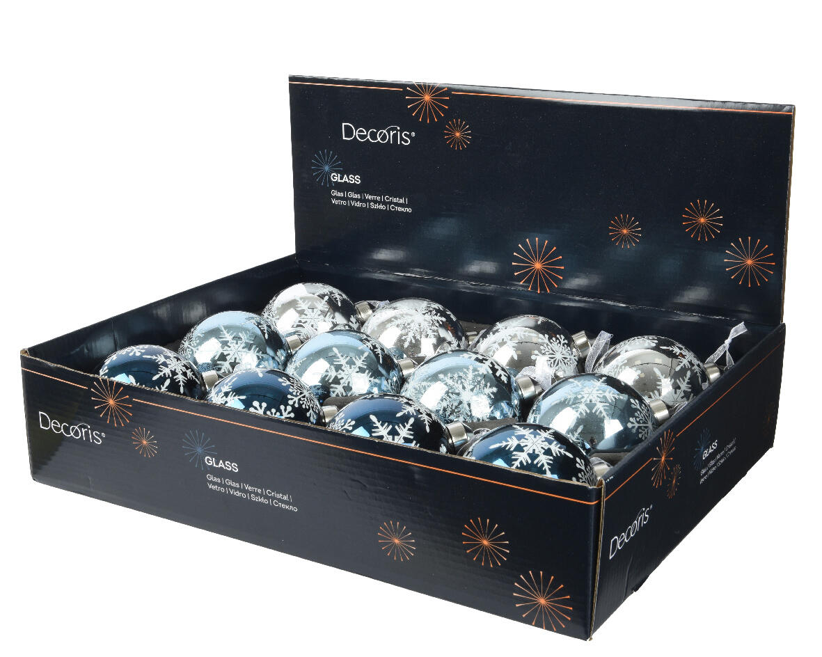 Bola para árvore de natal floco neve glitter 8cm sortido