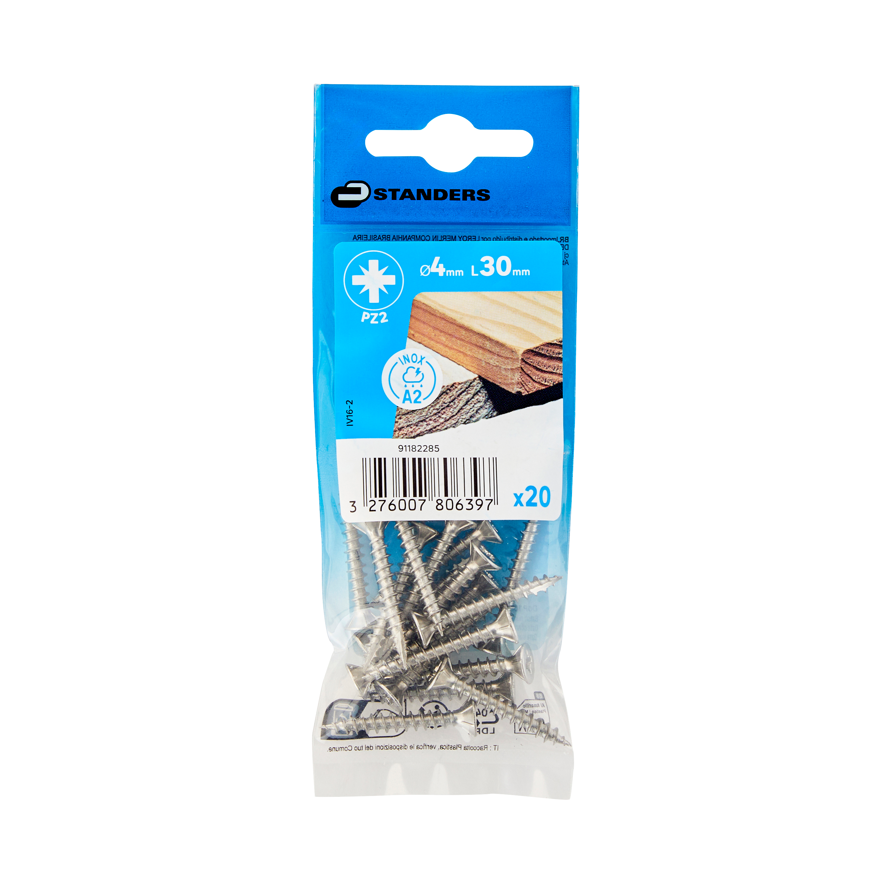 Bolsa 20 Parafusos cabeça plana oval STANDERS inox A2 4x30