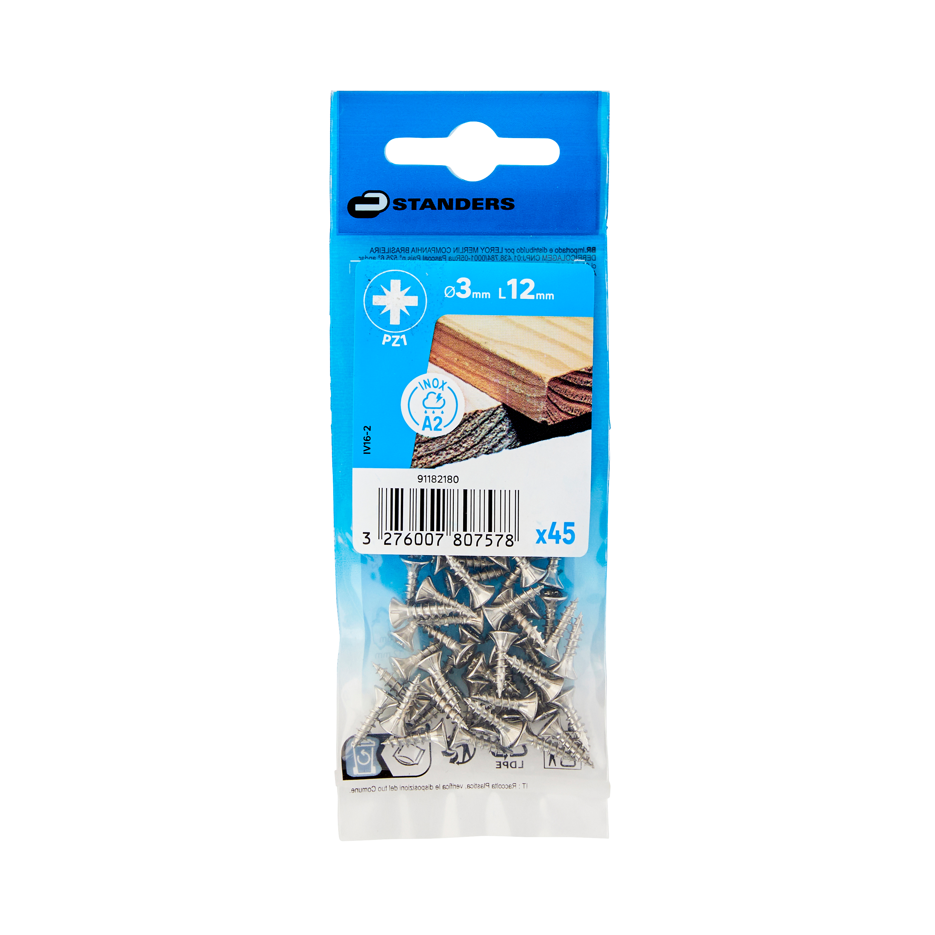 Bolsa 45 Parafusos cabeça plana oval STANDERS inox A2 3x12