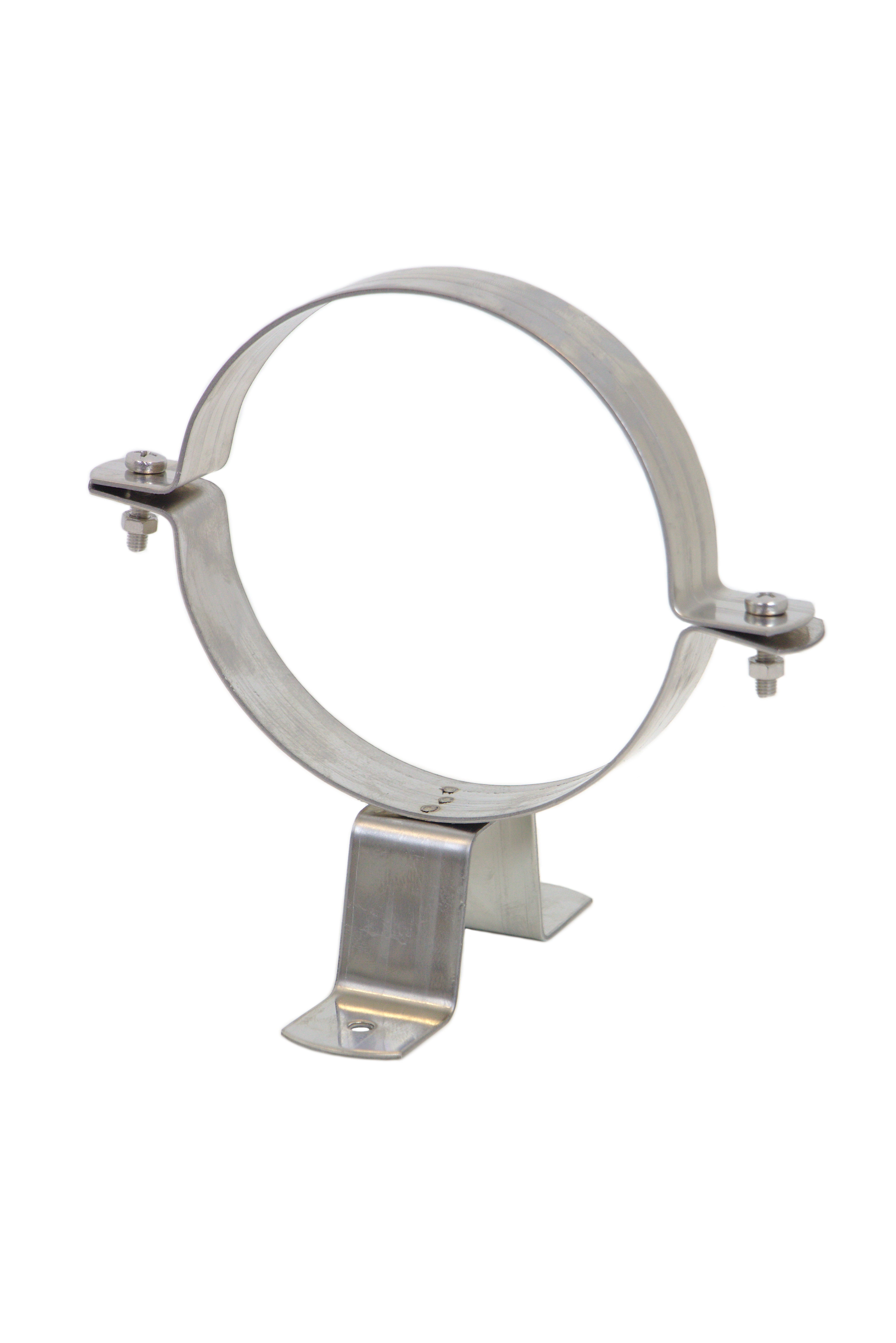 Braçadeira com apoio da marca VM Chaminés - Gama Acessórios de diâmetro 200mm, em inox 304 na espessura 1,5mm. Utiliza-se para chaminés de exaustão de fumos de equipamentos a lenha, a pellets, a gás, a carvão e a gasóleo. As braçadeiras têm como funções o alinhamento da tubagem e a respetiva fixação. Deverá optar pelo modelo que melhor se adeque à instalação em causa. Deverá ter presente que nos tramos verticais o suporte de carga assegura maior sustentabilidade do peso da chaminé.