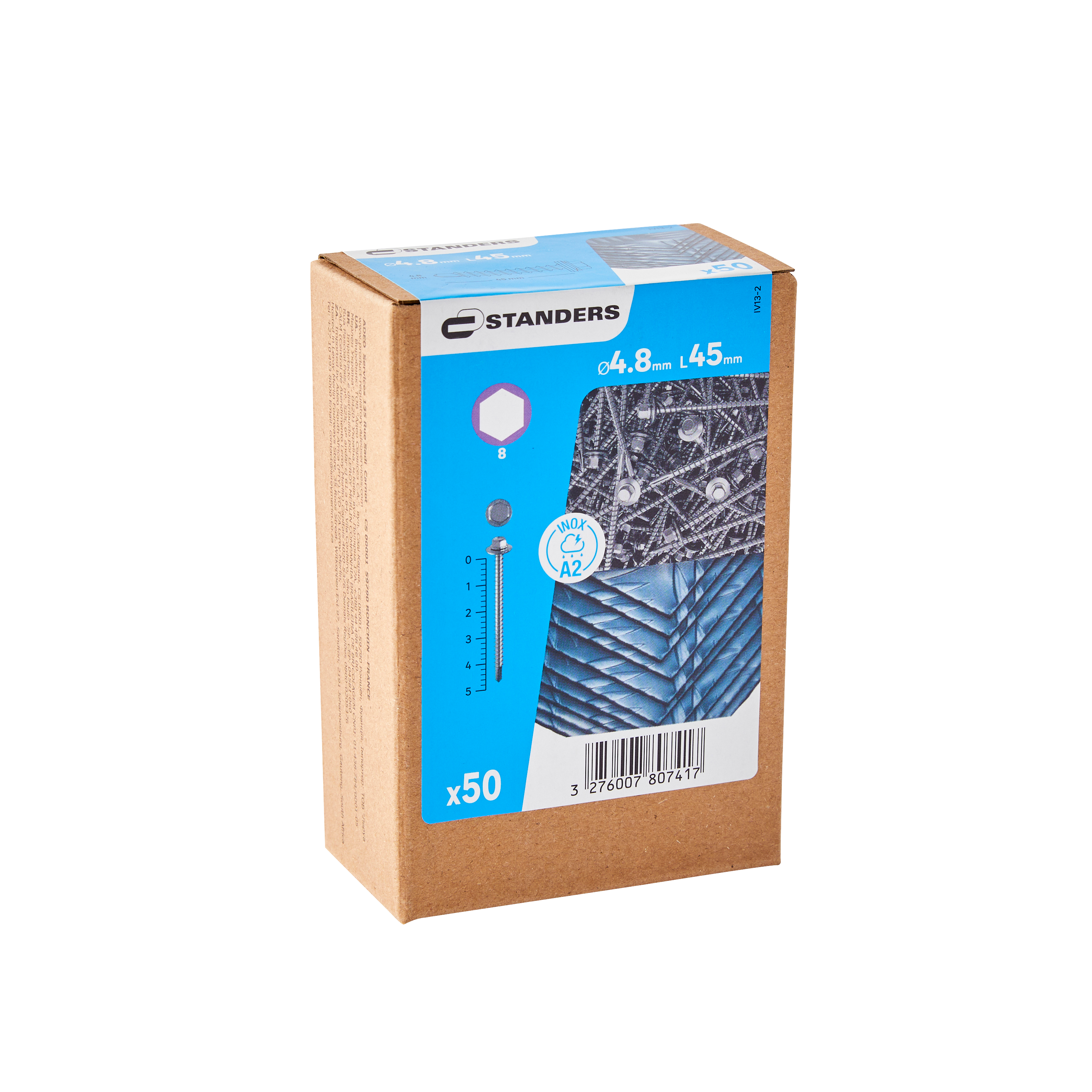 Caixa 50 Parafusos Autoroscantes Sextavado p/telha STANDERS inox a2 4.8x45