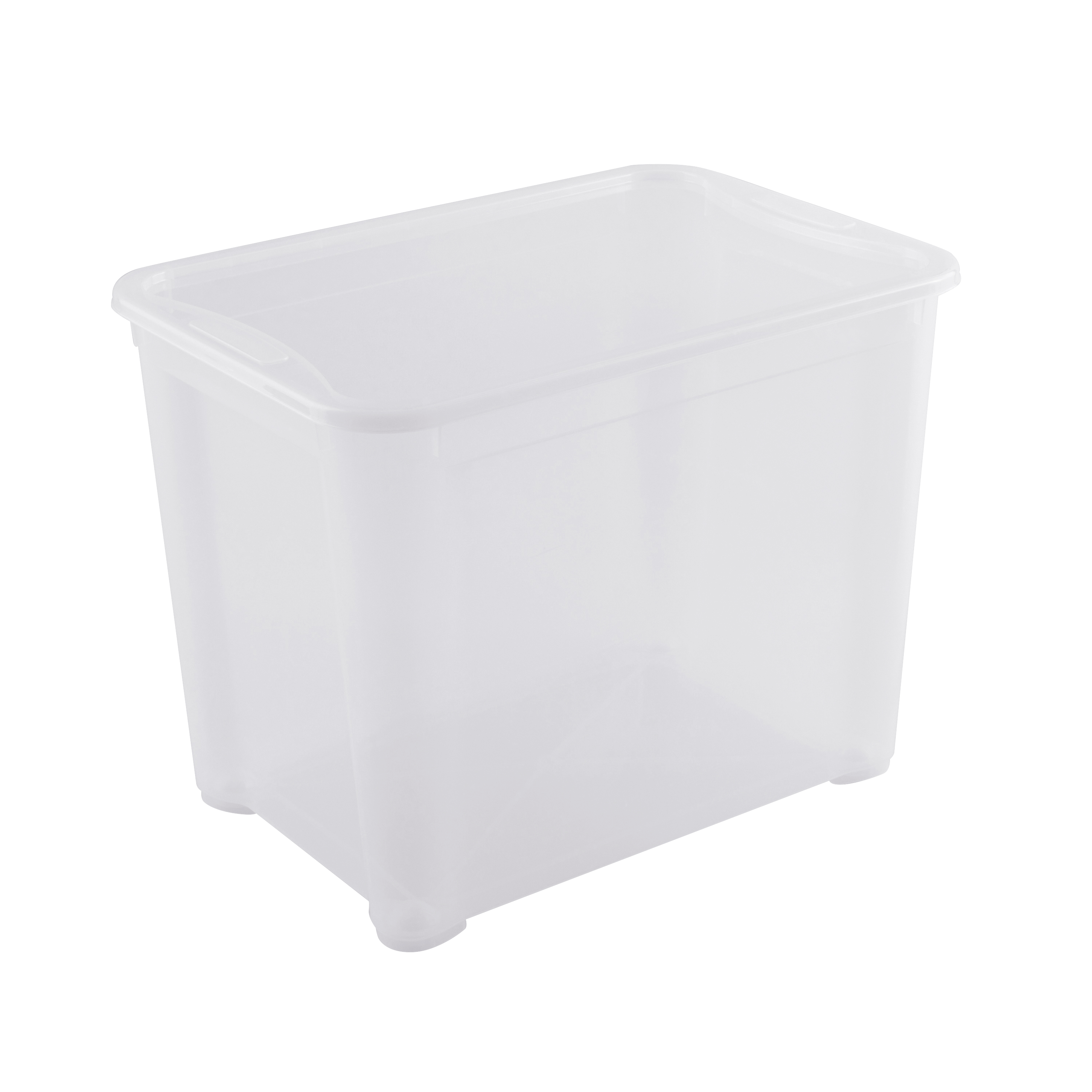 Cansado de perder as suas coisas? Esta caixa de arrumação em plástico é perfeita para guardar e organizar equipamento desportivo, cobertores, edredões ou casacos de inverno. A cor transparente facilita a verificação do conteúdo da caixa. A tampa protege os seus pertences do pó e permite empilhar as caixas. As dimensões da caixa são: L55,5 cm x P39 cm x A42,5 cm, com uma capacidade de 65L. Disponível em vários tamanhos, não hesite em combiná-los para otimizar o espaço. Apenas para utilização no interior.
