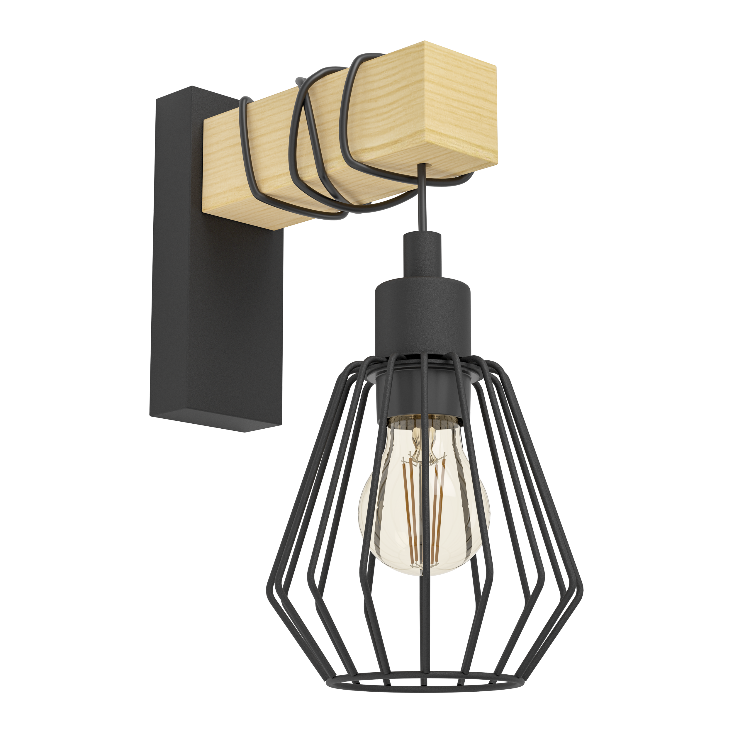 Candeeiro de parede INSPIRE TABODI E27 1 LUZ METAL/MADEIRA PRETO