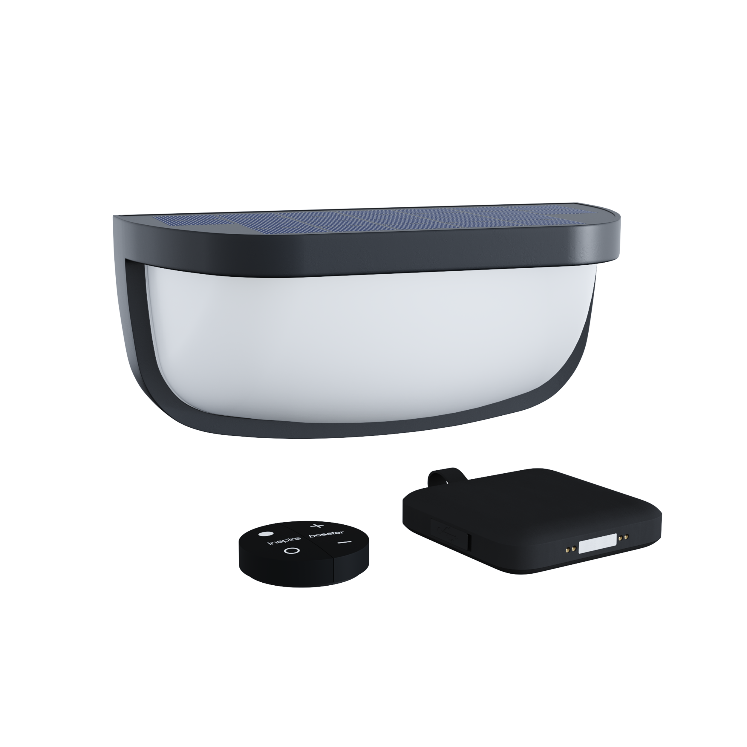 Este candeeiro de parede exterior solar Foley faz parte do nosso novo conceito solar BOOSTER. Muito funcional e elegante, este candeeiro de parede preto mate da INSPIRE é perfeito para iluminar o seu espaço exterior graças ao seu grau de proteção IP44. Oferece 4 níveis de iluminação, com diferentes níveis de potência, para se adaptar a qualquer noite: 100, 300, 600 ou 900 lúmenes. Introduza a pilha Booster (recarregável através do painel ou USB C) no aplique de parede para desfrutar do dobro do tempo de iluminação, para prolongar os seus serões ao ar livre sem ficar sem luz. Para além do botão ON/OFF no produto, a luminária de parede está equipada com um telecomando para que possa facilmente ligar/desligar e controlar a intensidade da iluminação. Esta luminária, com o seu LED integrado, é muito fácil de instalar. Este produto pode ser reparado.
