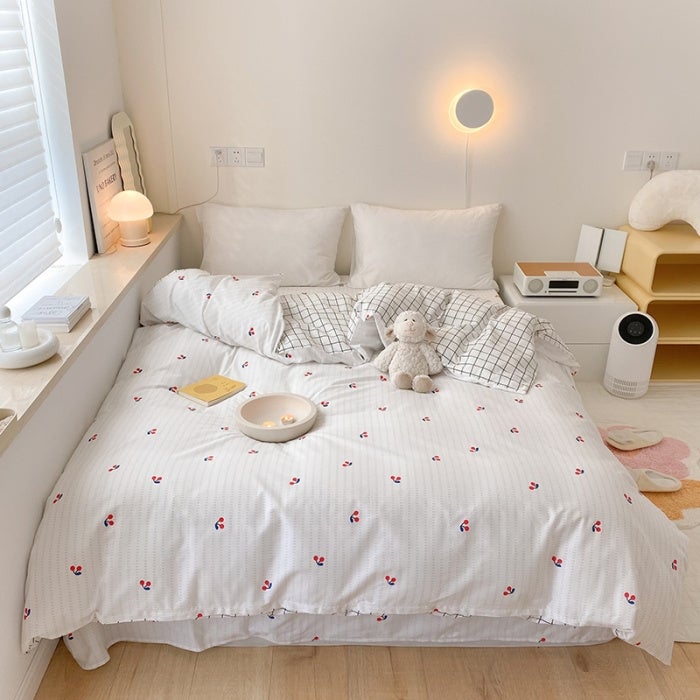 Capa de edredão 100% algodão estampado cereja branco capa de edredão para menina tamanho queen, 240 x 220 cm