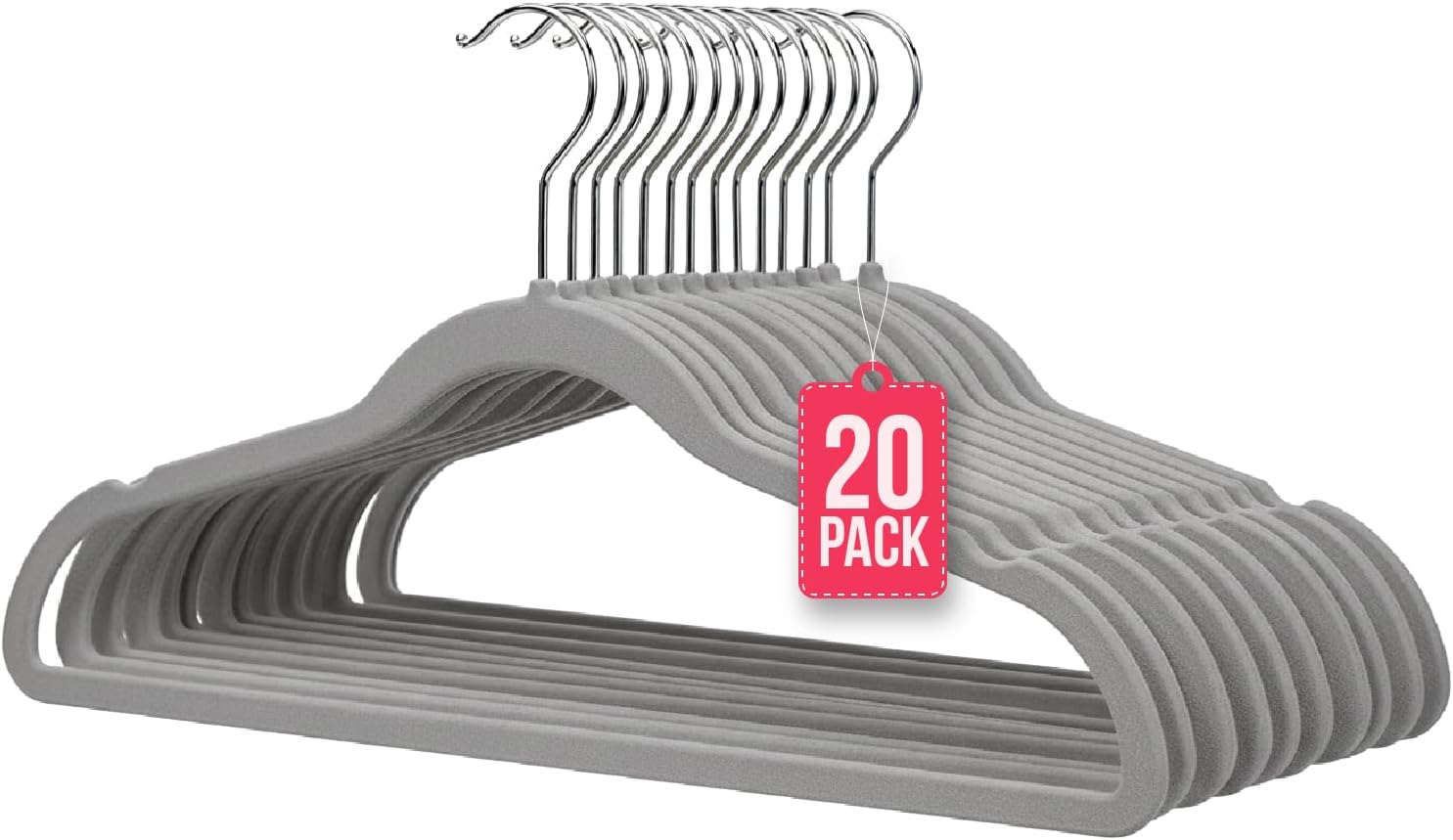 CASA COM-FORT | Cabide de Veludo | Cor Cinza | Antiderrapante e resistente | Cabides para roupas 20 Unidades |