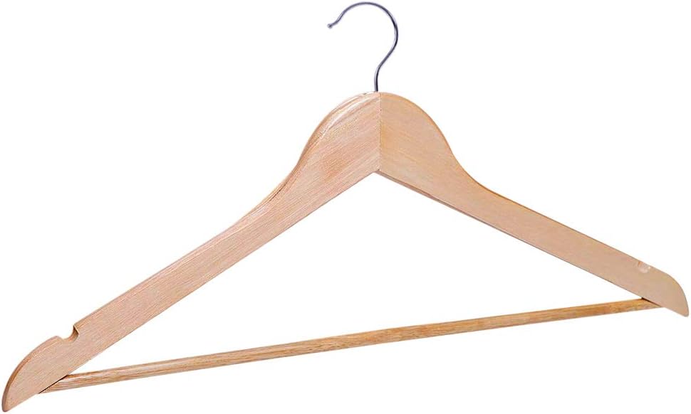 CASA COM-FORT | Pacote com 10 cabides de madeira antiderrapantes | Cor Natural | Design fino e elegante | Madeira maciça