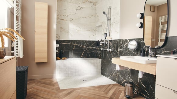 Projete a casa de banho dos seus sonhos, com móveis de casa de banho, lavatórios e sanitas ao seu gosto. Renove a zona do duche com uma grande variedade de bases de duche e painéis que combinam com o seu chuveiro ou coluna de duche preferidos. Inspire-se com torneiras pretas, spas e banheiras de hidromassagem e dê um toque decorativo ao espaço com acessórios, caixas, suportes e toalheiros.