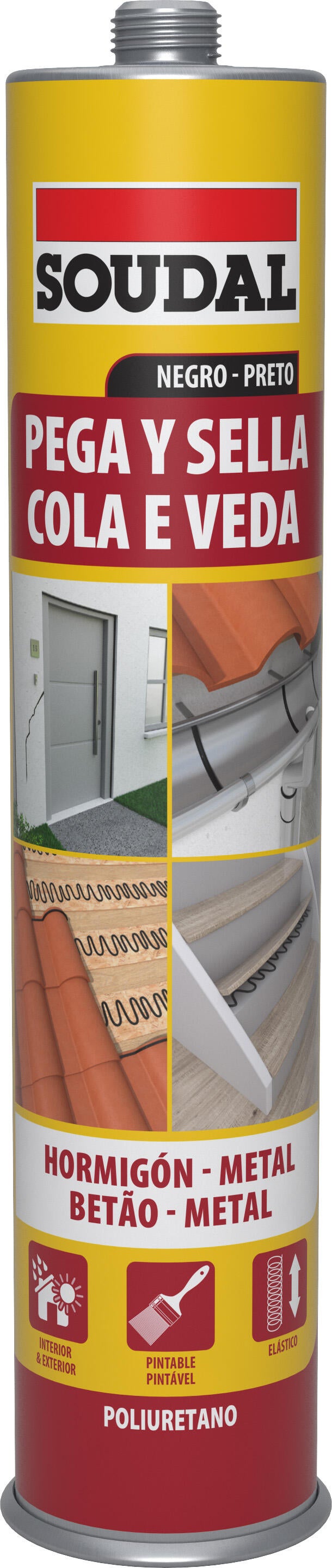 Cola e veda poliuretano betão e metal 290 ml preto Soudal