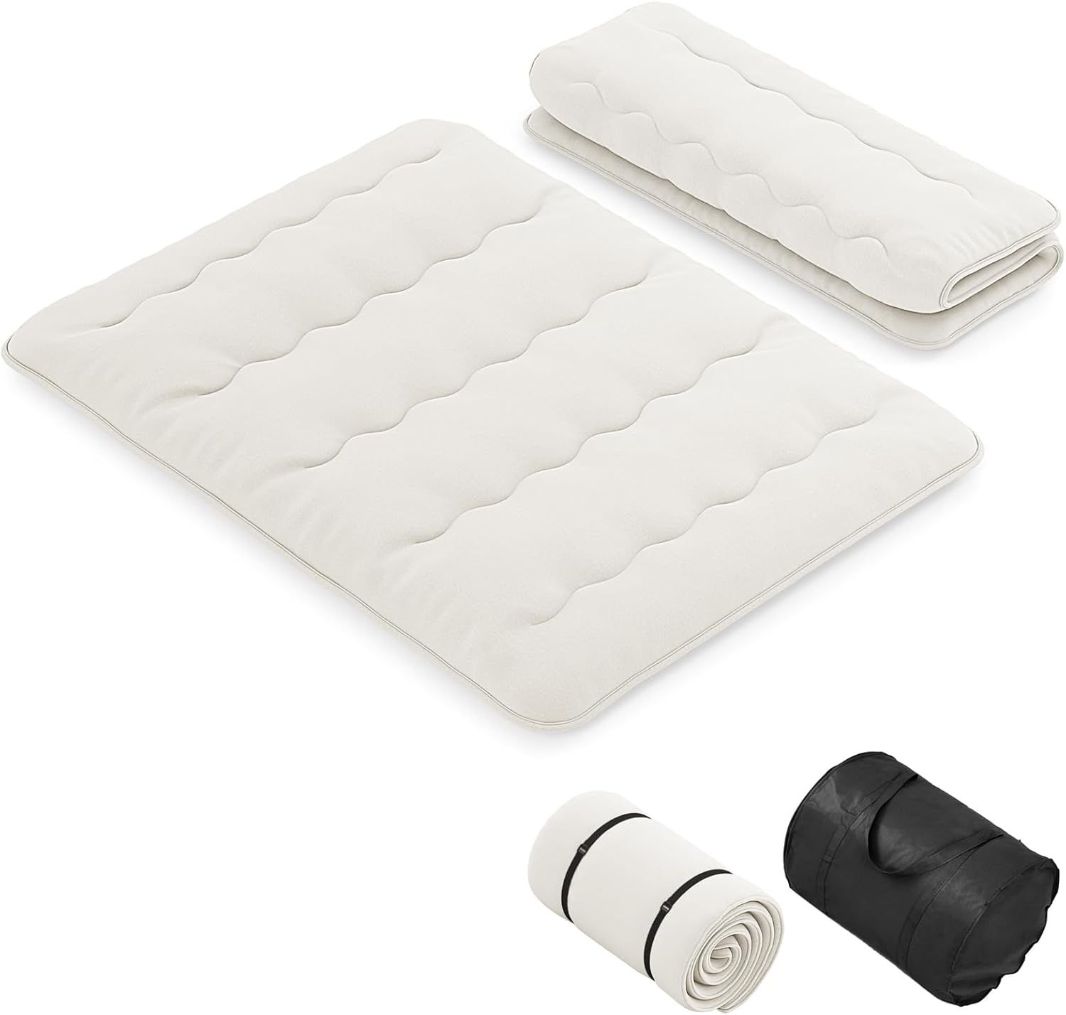 Utilização versátil: O nosso colchão multifuncional pode ser utilizado como colchão portátil, colchão de tatami, colchão de campismo ou tapete de brincar para os seus filhos, convidados, amigos, colegas, pais, parentes, entes queridos, ou para proporcionar aos seus animais de estimação ou a si uma noite de sono confortável. Conteúdo da embalagem: Além de um colchão futon, também vem com uma capa de colchão, duas ligaduras e uma bolsa de transporte. Para facilitar o armazenamento e a portabilidade, este colchão de chão enrolável pode ser dobrado e enrolado, preso com tiras e guardado na bolsa de transporte.