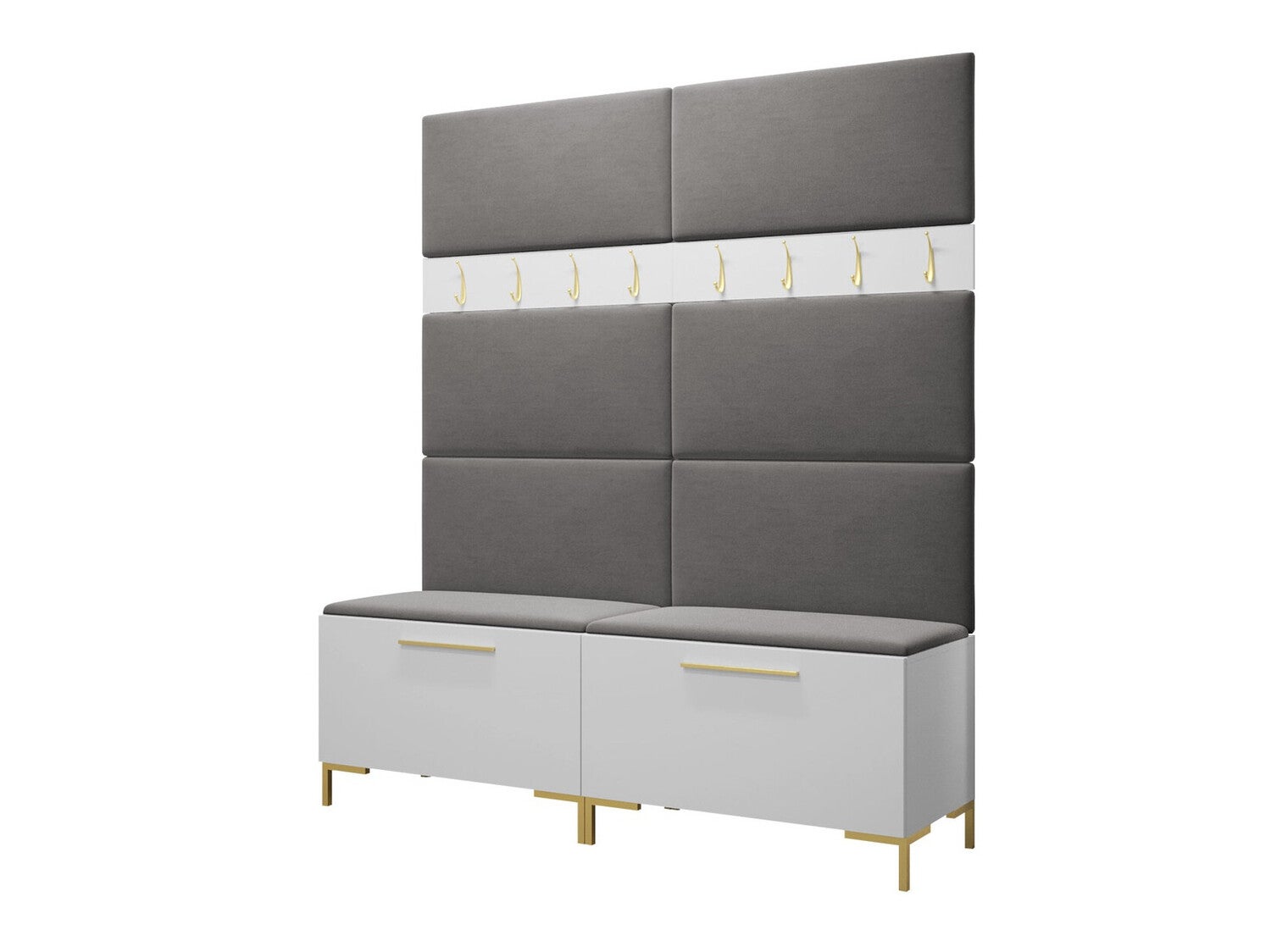Conjunto para corredor Tivsoa 101, 196x168x46cm, Branco, Placa de aglomerado laminado, Tecido, Montado nas parede, Colocado