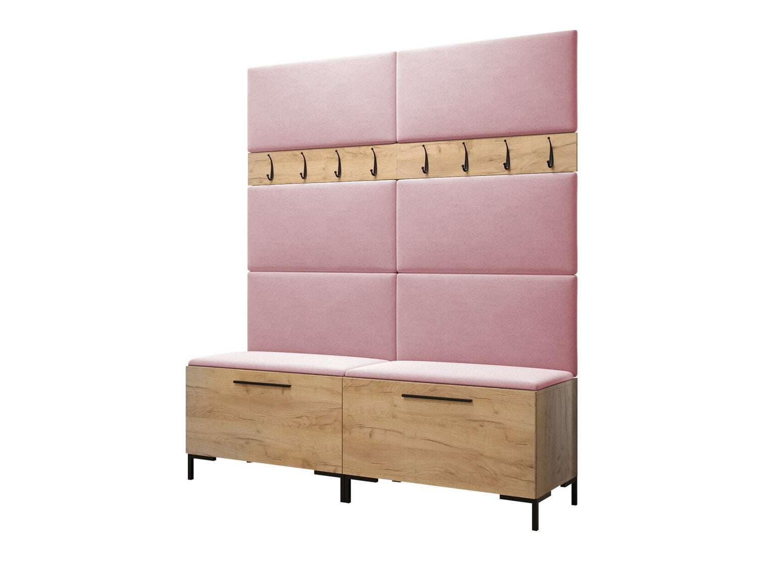 Conjunto para corredor Tivsoa 101, 196x168x46cm, Craft carvalho, Placa de aglomerado laminado, Tecido, Colocado, Montado nas parede