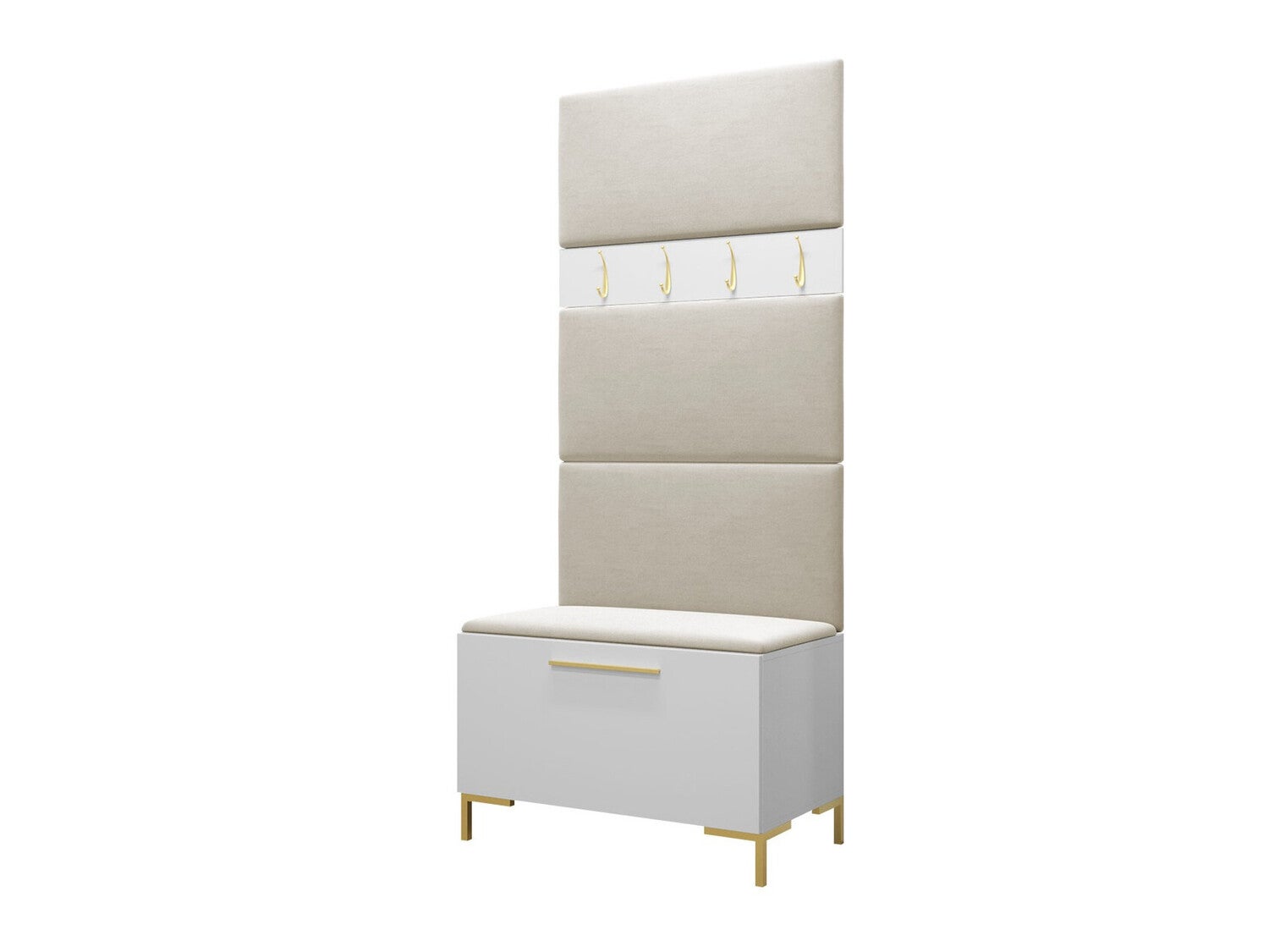 Conjunto para corredor Tivsoa 102, 196x84x46cm, Branco, Placa de aglomerado laminado, Tecido, Montado nas parede, Colocado