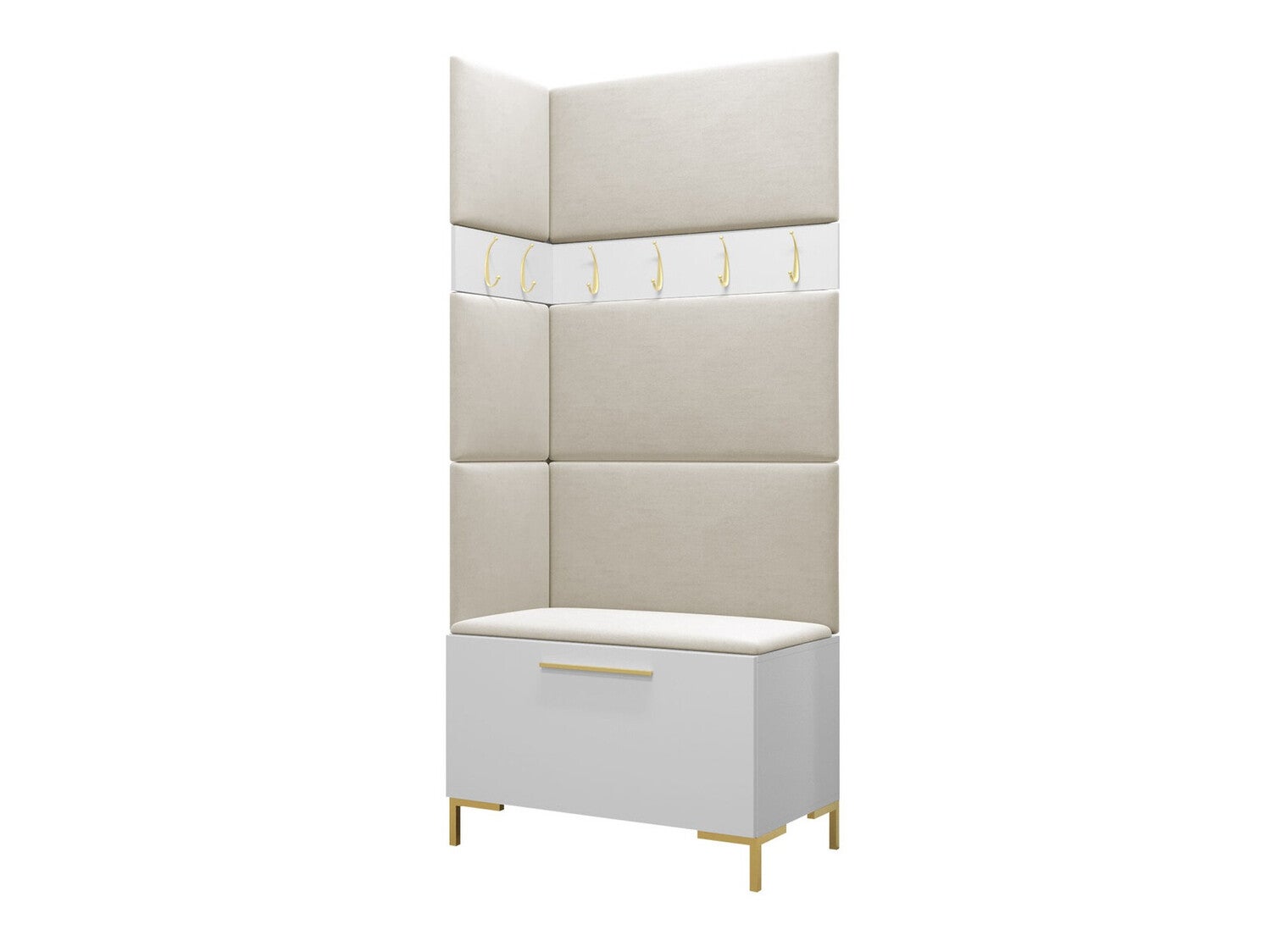 Conjunto para corredor Tivsoa 103, 196x84x46cm, Branco, Tecido, Placa de aglomerado laminado, Colocado, Montado na parede