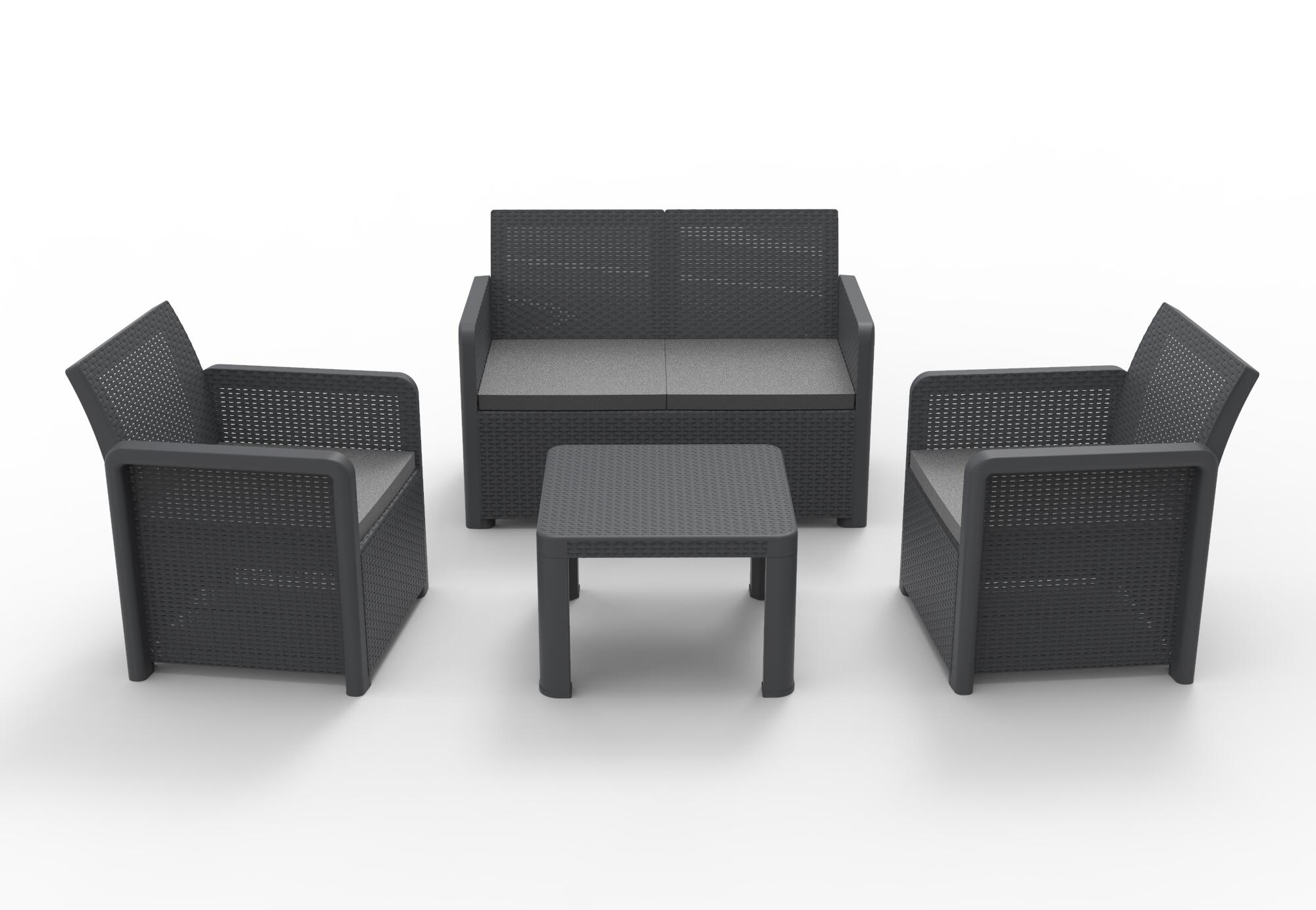 Conjunto relax com sofá, 2 cadeirões e mesa de centro em resina antracite Azores