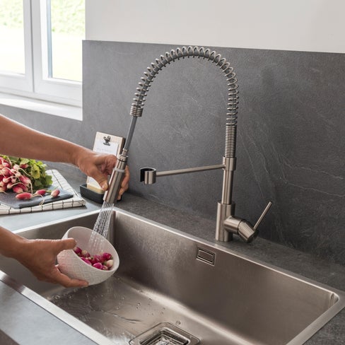 Descubra a nossa gama de torneiras de cozinha, facilite a tarefa de lavar a louça e ao mesmo tempo dê um toque personalizado à sua cozinha.