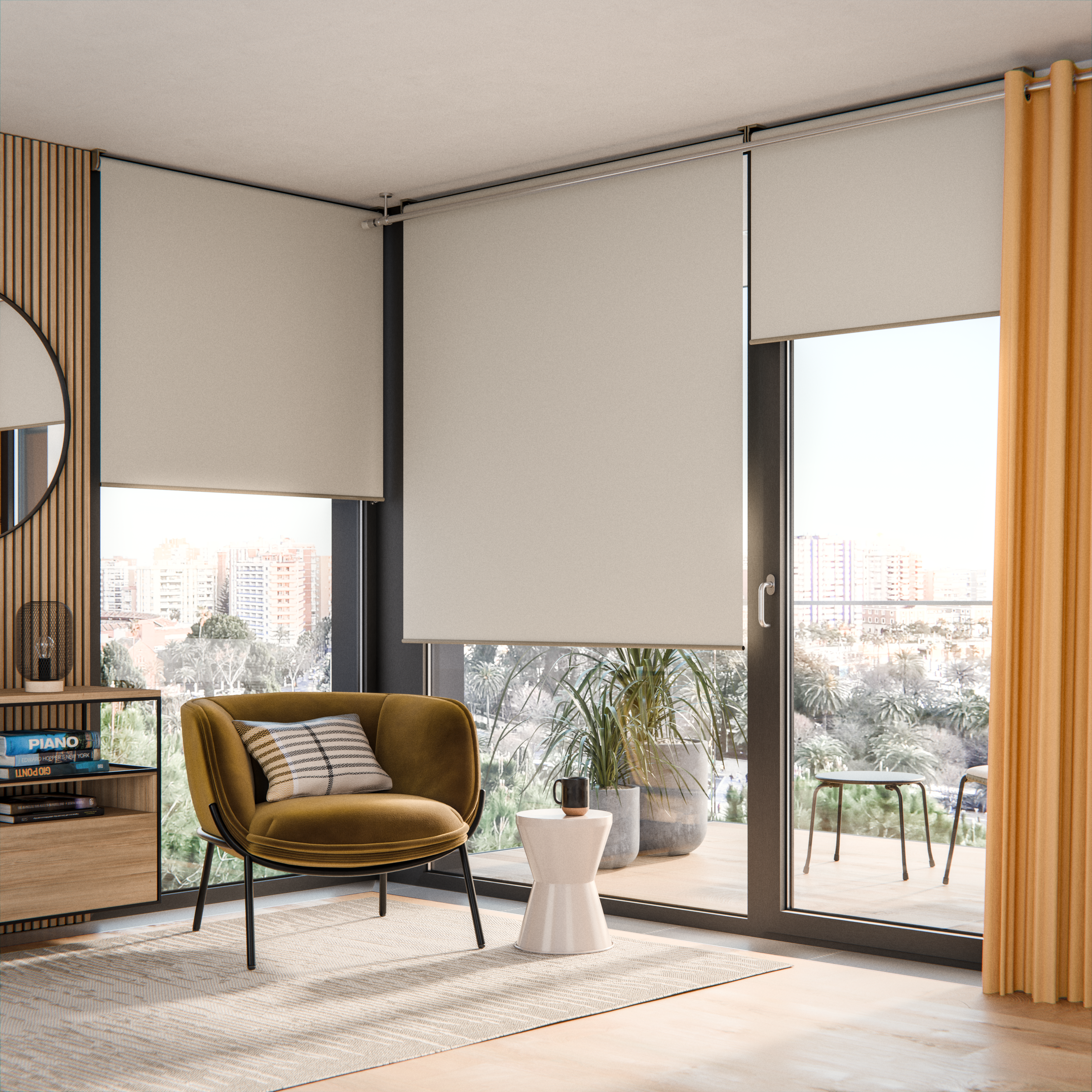 Tecido blackout que bloqueia a entrada de luz natural, atingindo um nível de escuridão total e preservando a privacidade da sua casa.