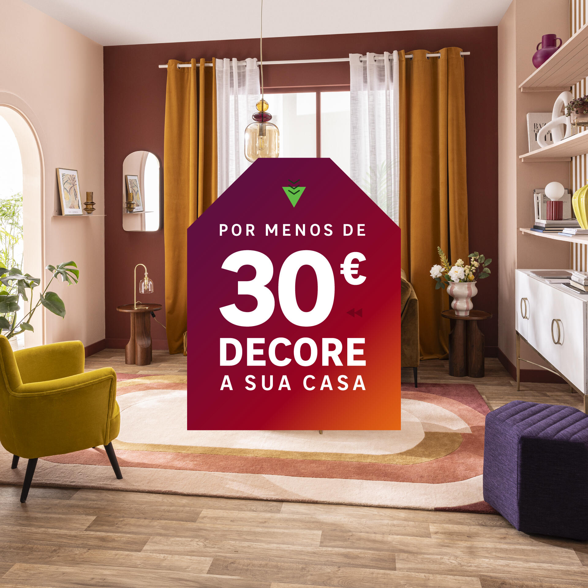 Quem disse que é preciso gastar uma fortuna para decorar a casa com estilo? Com peças da LEROY MERLIN até 30€, é possível renovar o visual da sala, quarto, casa de banho e cozinha. Dos candeeiros aos espelhos, dos tapetes aos quadros decorativos, dos cortinados aos vasos com plantas naturais… na LEROY MERLIN existem muitos artigos encantadores e económicos para embelezar o lar. Venha conhecê-los!