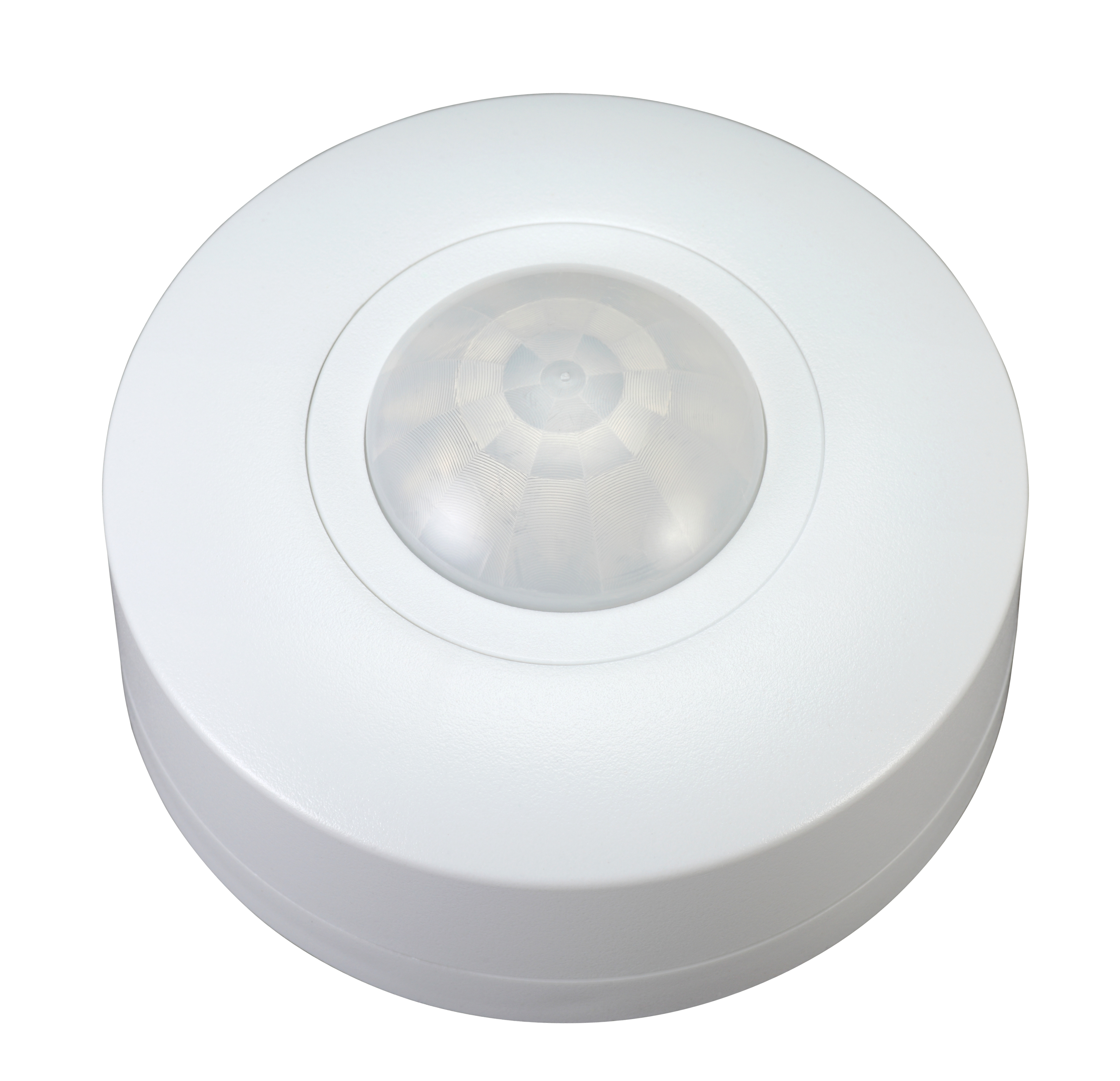 Detector de movimento por infravermelhos com sensor de 360º, ideal para instalar no teto de zonas de passagem como corredores ou escadas.