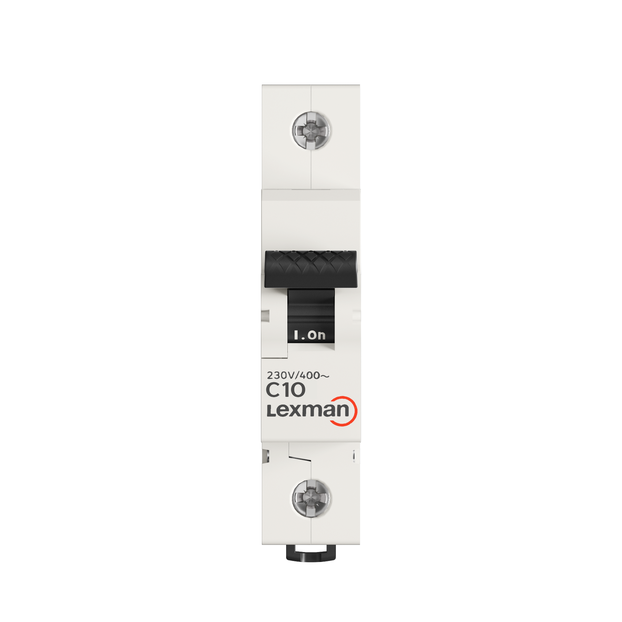 Disjuntor 1 polo curva C 10A conexão por parafuso capacidade de interrupção 6000A LEXMAN