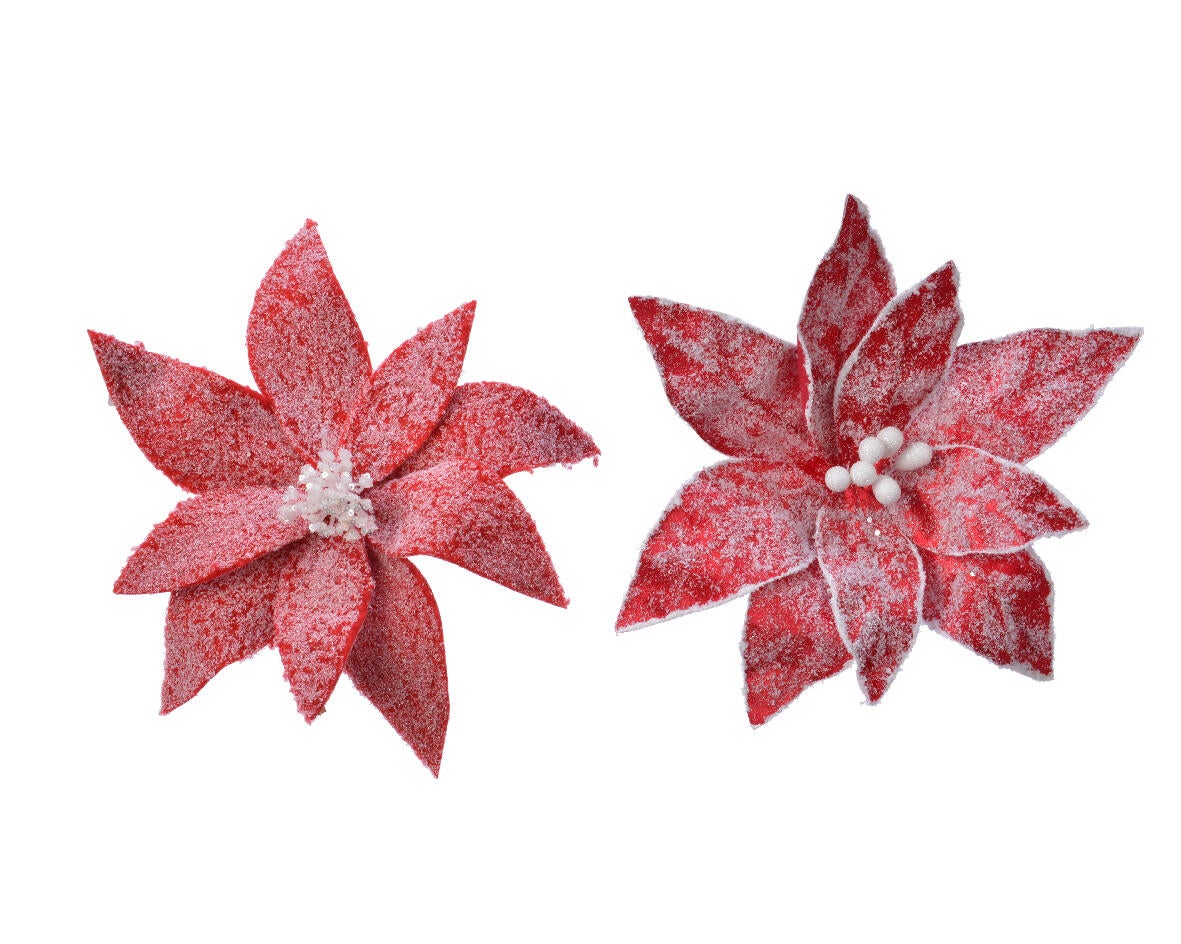 Enfeite clip poinsettia efeito neve 29 cm vermelho (forma sortida)