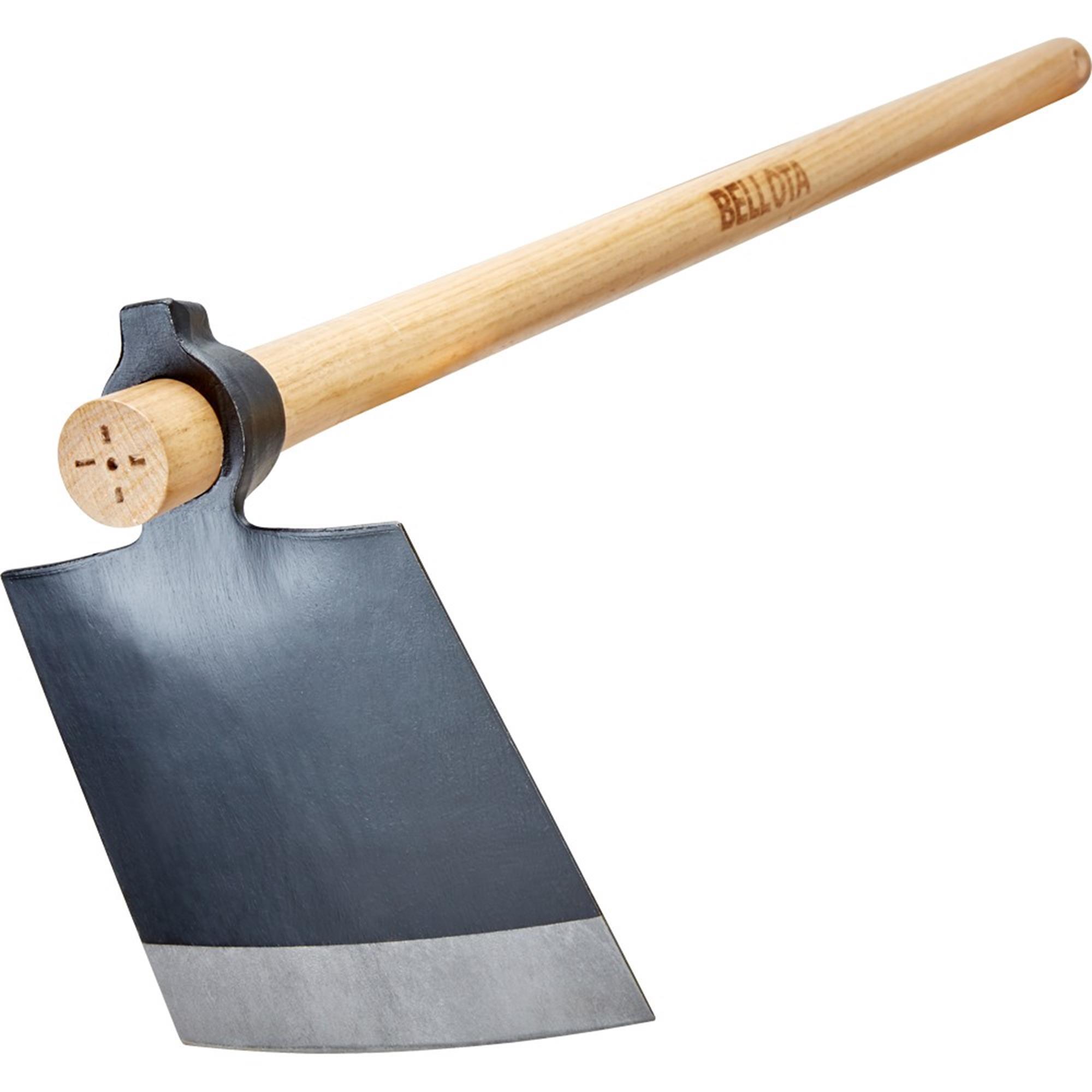 Enxada Bellota forjada com cabo extralongo, de 1200mm para remover a terra. Tratada termicamente, forjada numa única peça e fabricada em aço de boro, polida e afiada.