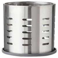 Escorredor de talheres no formato redondo, com furos para que não haja humidade e escorrer água, um dos principais utensílios de cozinha, em material de metal da marca DELINIA. Ideal para colocar na bancada da sua cozinha. Possui 13,5 cm de altura.