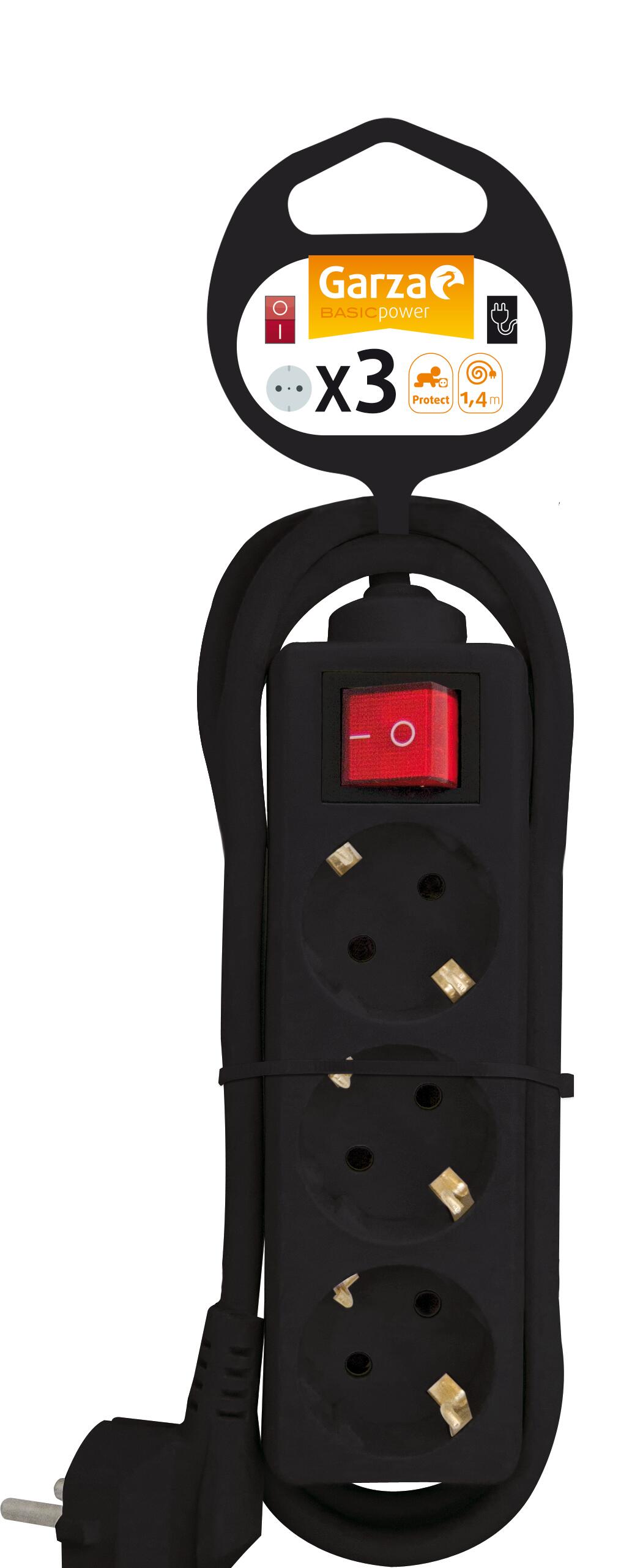 Extensão de 3 tomadas com interruptor 1.4m preto Garza