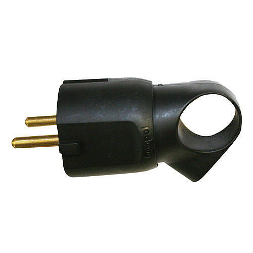 Ficha de conexão macho com 2 polos + terra, possui saída de cabo frontal e possui alça para facilitar a conexão e desconexão, evitando a quebra que ocorre quando puxamos o cabo. Recomendado para cabos com 3 fios de até 2,5 mm² de espessura e correntes elétricas com intensidades de até 16 A. Fabricado principalmente em material plástico, na cor preta. Medidas: 190 x 190 x 95 mm (Largura x Altura x Profundidade).