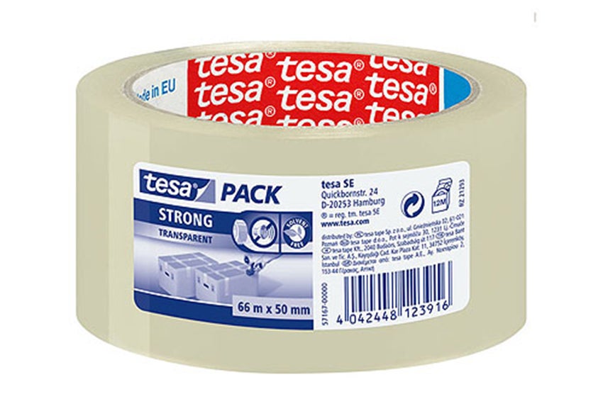 Cinta adhesiva de embalar de 50 mm de ancho en color transparente. Indicada para pegar cajas de cartón y papel.