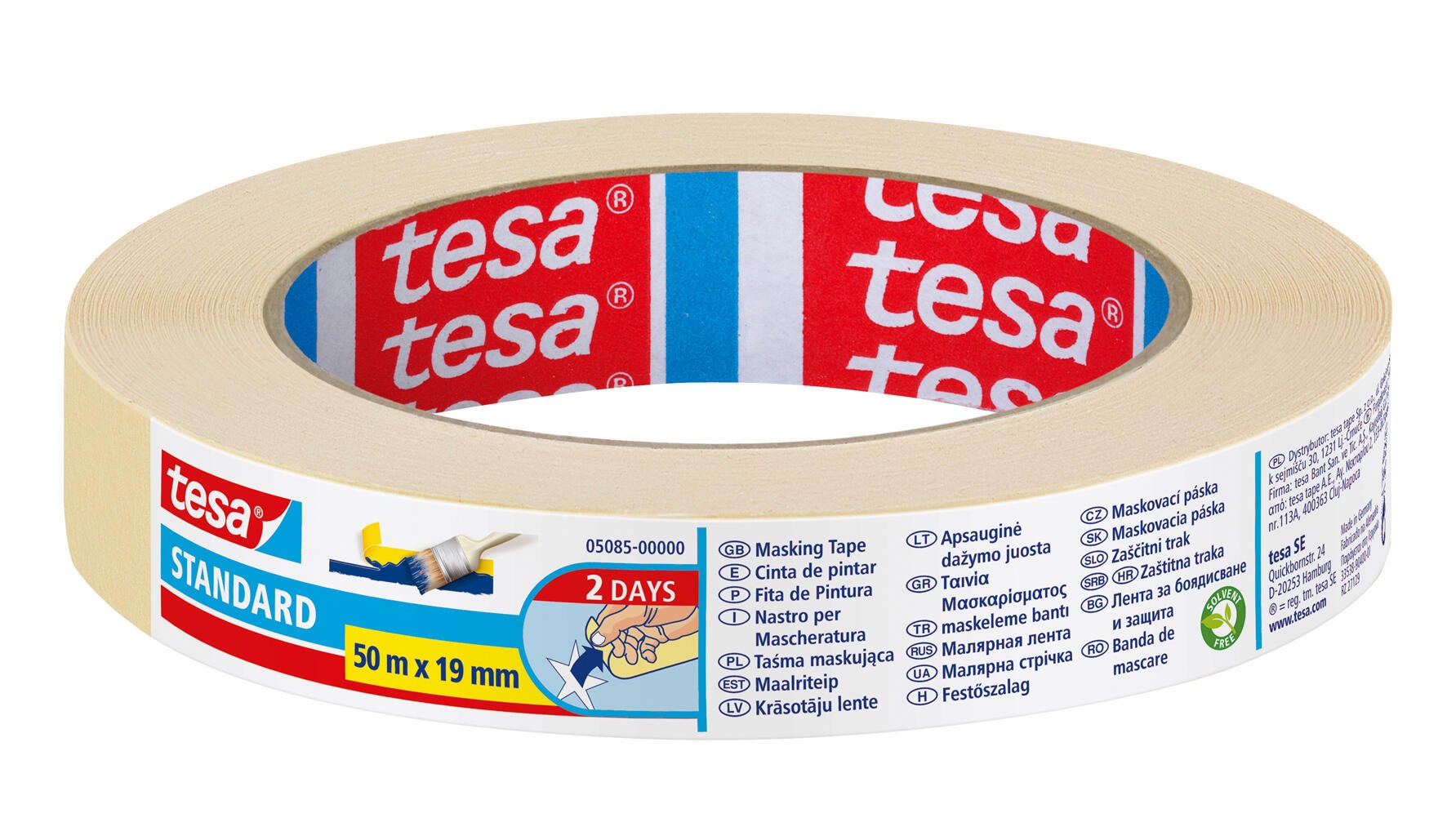A fita de pintar tesa® Masking Standard é uma fita multifuncional que deverá sempre fazer parte do seu equipamento de pintura caso decida pintar uma parede ou renovar a sua casa. Feita de papel para menor volume de desperdício, esta fita está disponível em 3 larguras para uma proteção efetiva em praticamente todas as situações. Oferece simultaneamente uma boa adesividade e garante uma remoção fácil e sem vestígios até 3 dias após aplicação.