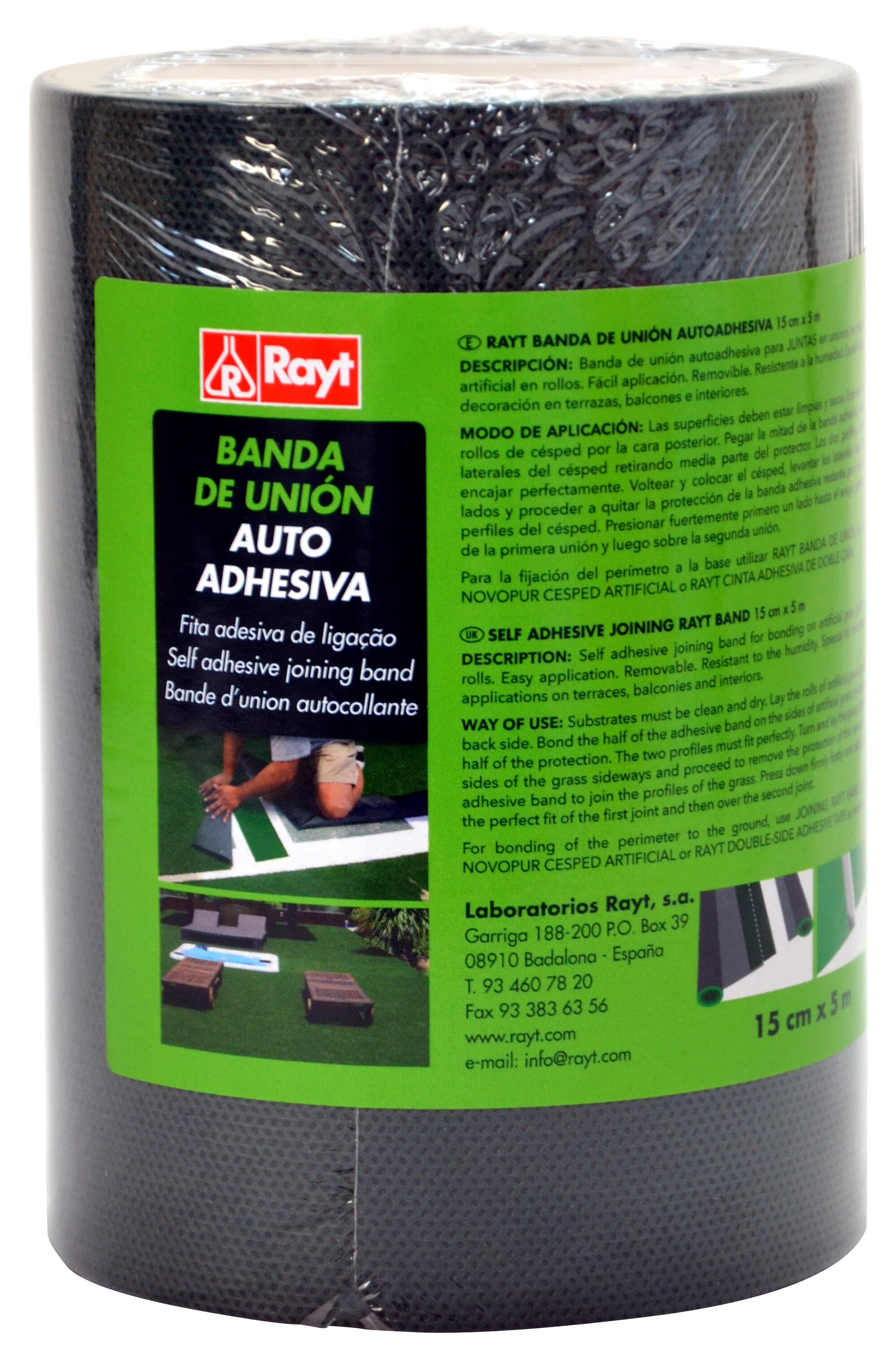 Fita de união autoadesiva para juntas em uniões de relva artificial em rolos. Medidas: 0.15X15 m.